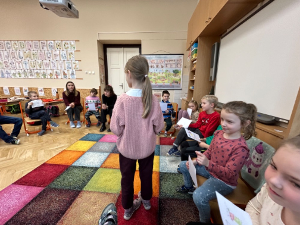 V úterý 14.1. navštívila první ročníky lektorka Eliška s programem zaměřeným na posílení dobrých vztahů ve třídě. Zahráli jsme si několik her, ve kterých jsme více poznávali své spolužáky. Na závěr si každý vytvořil erb své osobnosti.