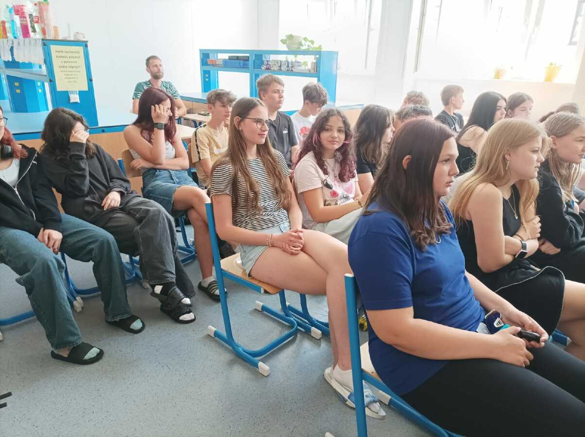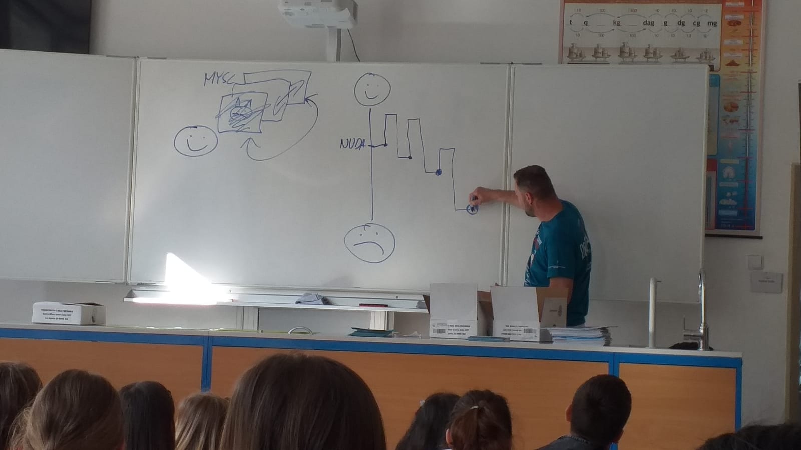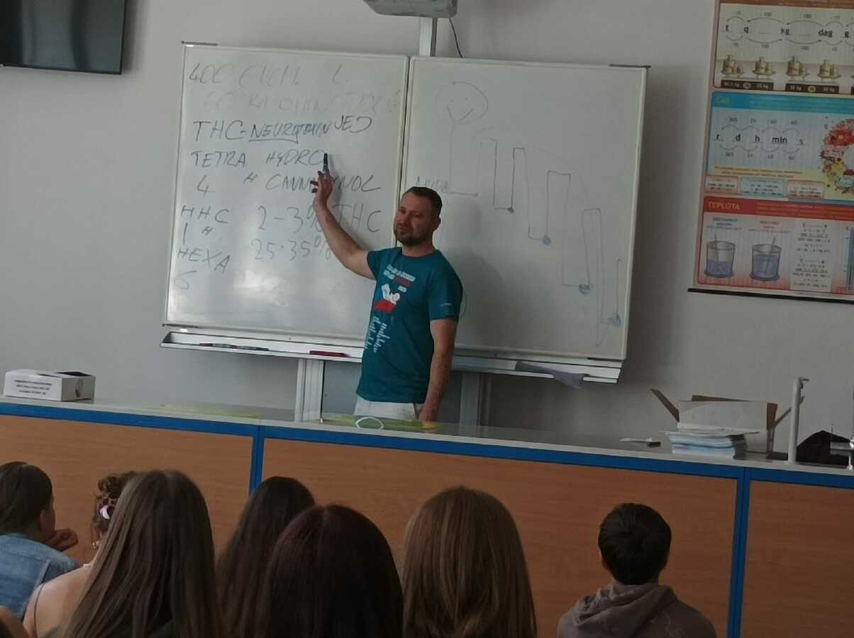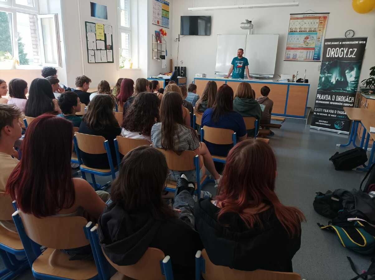 Žáci 4. - 8.ročníků se v pátek 13.6. účastnili přednášky o drogách. Seznámili se s tím, co jsou drogy. Drogy = jed. Člověk bere drogy, aby se zbavil nechtěných pocitů. Dlouhodobé užívání bohužel tyto pocity velmi prohlubuje.