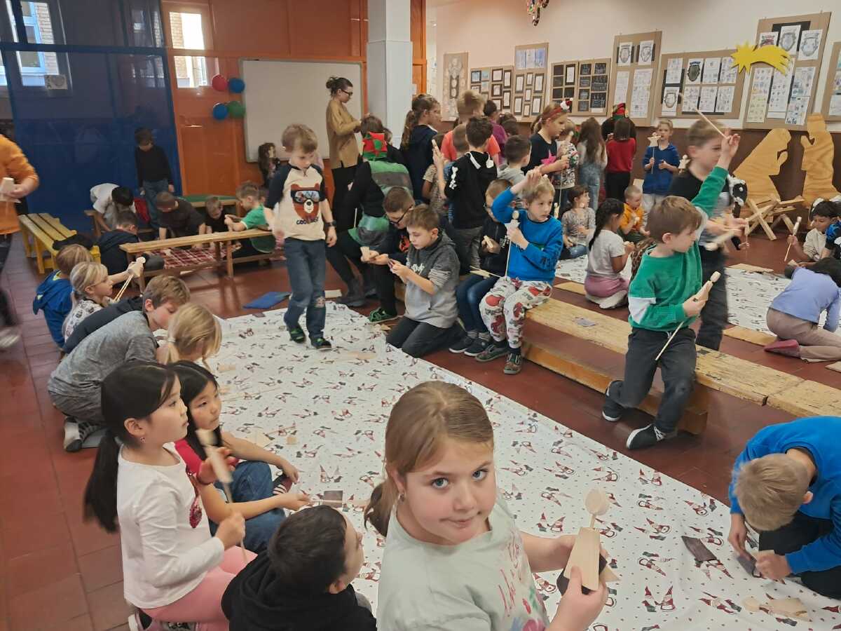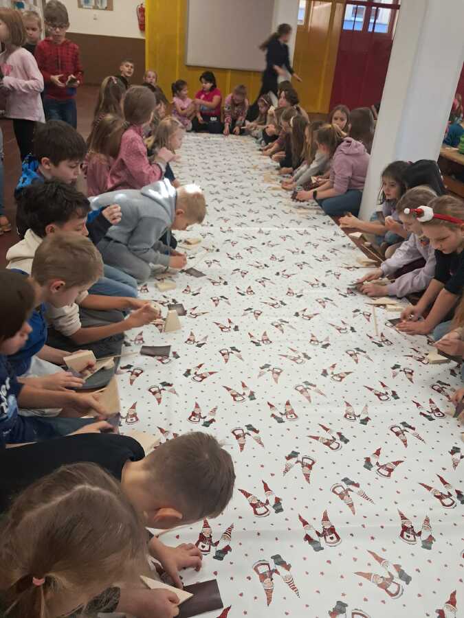 Ve středu 10. 12. 2025 se školní aula proměnila ve vánoční tvořivou dílnu. Na všechny děti ze školní družiny čekalo krásné překvapení – výroba vlastního dřevěného anděla. Pro většinu z nich to byla úplně první příležitost vyzkoušet si práci se dřevem.