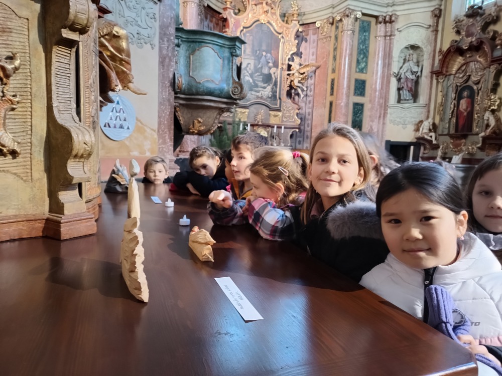 V pátek 28.11.2025 navštívily děti z 1. oddělení ŠD výstavu s názvem Zimní čas v kostele svatého Jana Nepomuckého v Kutné Hoře. Prohlédly si akvarelové obrazy a řezby umělkyně Hany Richterové a originální variace na téma Pražského jezulátka, šitá, vyšívaná i s krajkovými aplikacemi z textilních látek, které vytvořily umělkyně ze sdružení Zašitá krása.