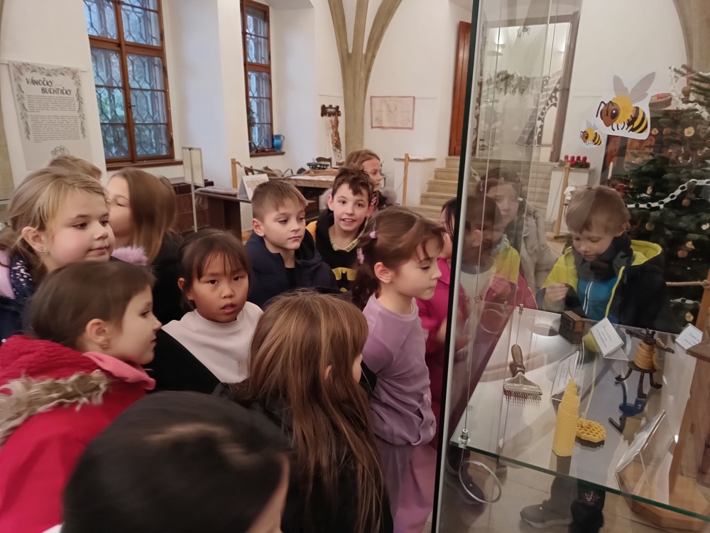 Přesně tak se jmenuje výstava, která je k vidění v Českém muzeu stříbra v Kutné Hoře. V úterý 2.12.2025 ji navštívily děti z 1.oddělení ŠD. Nahlédly do historie a seznámily se s tradicemi a zvyky našich předků. Vyzkoušely si zaplést vánočku, prohlédly si pomůcky včelaře, řezníka, cukráře, perníkáře a měly možnost vidět tradiční štědrovečerní pokrmy, které na stolech dříve nesměly chybět o Vánocích.