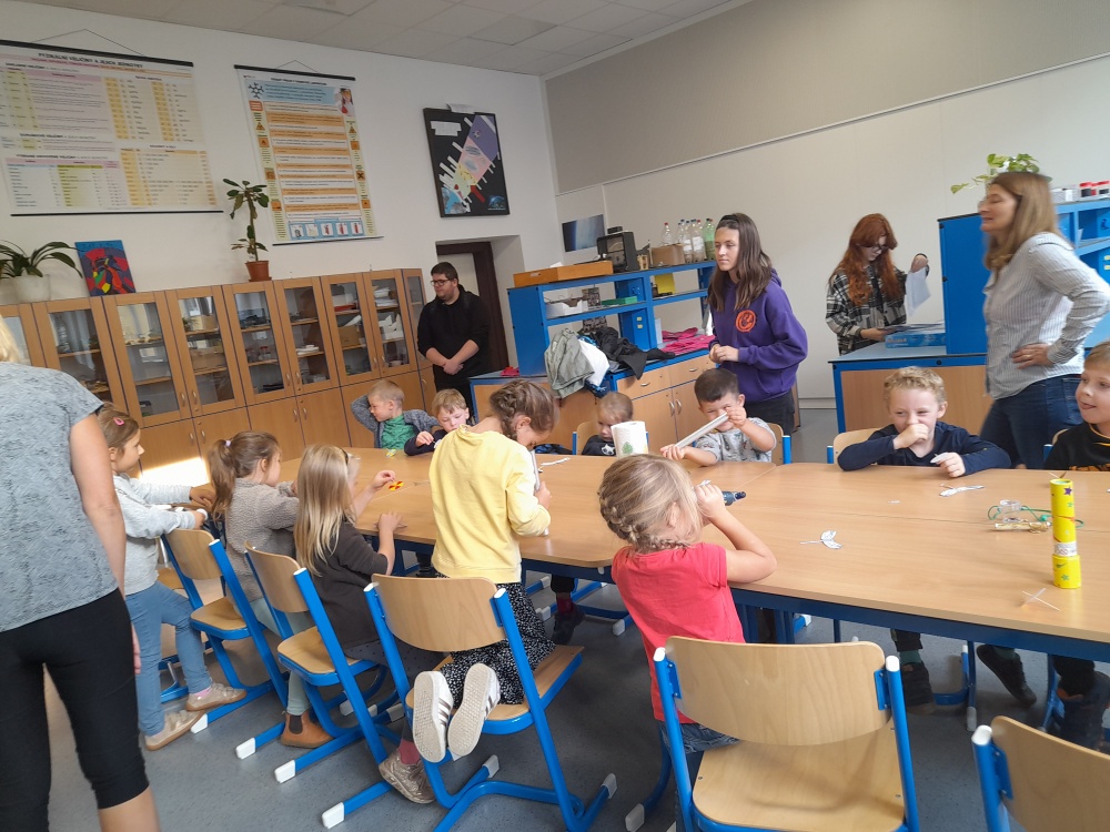 Děti programem provázeli zkušení pomocníci z řad žáků osmého ročníku. Společně bádali nad těžištěm těles, vlastnostmi kapalin, magnetů a optickými jevy. Do školky si odnesly drobné výrobky.