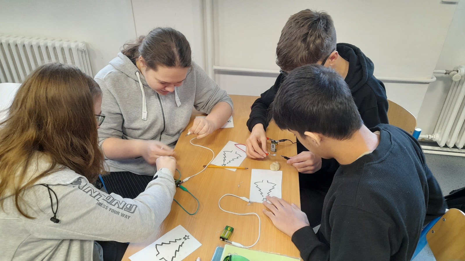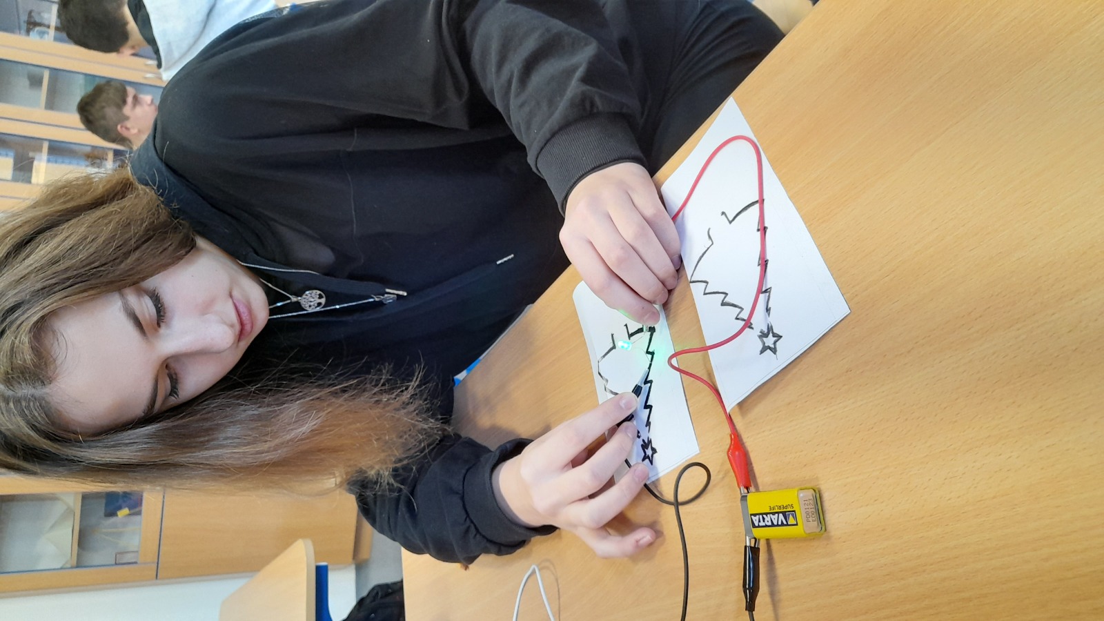 V posledních předvánočních hodinách jsme pro žáky připravili řadu zajímavých aktivit. V hodinách fyziky a chemie si děti vyzkoušely řadu atraktivních vánočních pokusů. K nejkrásnějším svátkům v roce patří vánoční stromeček, světýlka, cukroví, kapříci a vánoční ozdoby. Toho jsme se drželi i v našich hodinách. Žáci se pokusili „oživit“ kapříka – optický klam s užitím odrazu a lomu světelných paprsků, rozsvítili vánoční stromeček pomocí stopy obyčejné tužky na papíře a LED diod. Tak trochu netradičně využili připraveného „těsta na cukroví“ a zapojili ho do elektrického obvodu k jejich překvapení zjistili, že je velmi dobře elektricky vodivé díky přítomné vysoké koncentraci kuchyňské soli a octu. Mladší žáci bádali nad kouzlem, proč některé vánoční ozdoby plavou na vodní hladině, jiné se více či méně potápí. Celkově jsme si předvánoční čas užili. Do projektu Hravá fyzika se zapojila všechna oddělení družiny a během sedmi pondělních odpolední prozkoumala podobné pokusy.