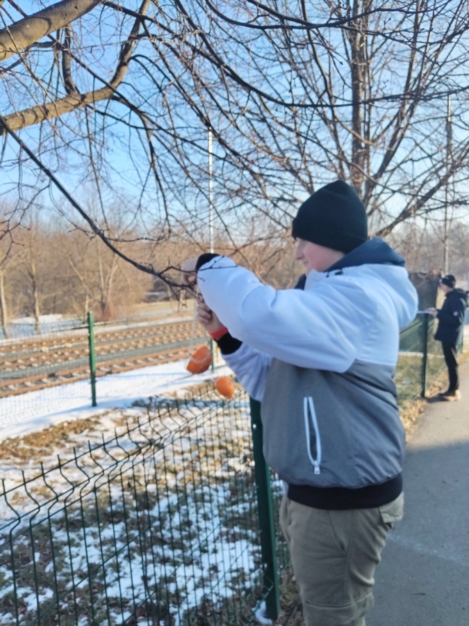 I přes silný mráz jsme se vydali se sedmou třídou a externí lektorkou Šárkou Mrňákovou z Eduzměny objevovat ptačí říši do přírody.