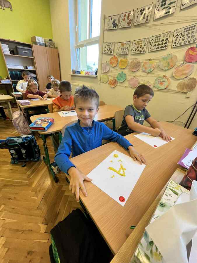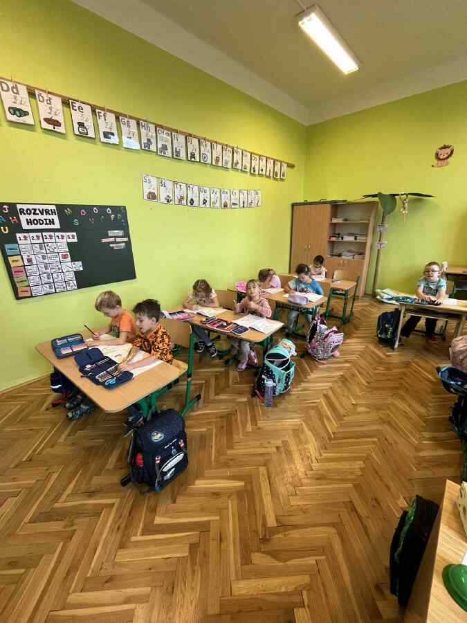 Kromě toho, že se prvňáci seznamovali s prostředím školy, zvládli se už naučit první písmena. Trénujeme jemnou motoriku, počítáme do 5, učíme se anglické básničky a vyrábíme. Ve fotogalerii se můžete podívat i na naše další zářijové zážitky.