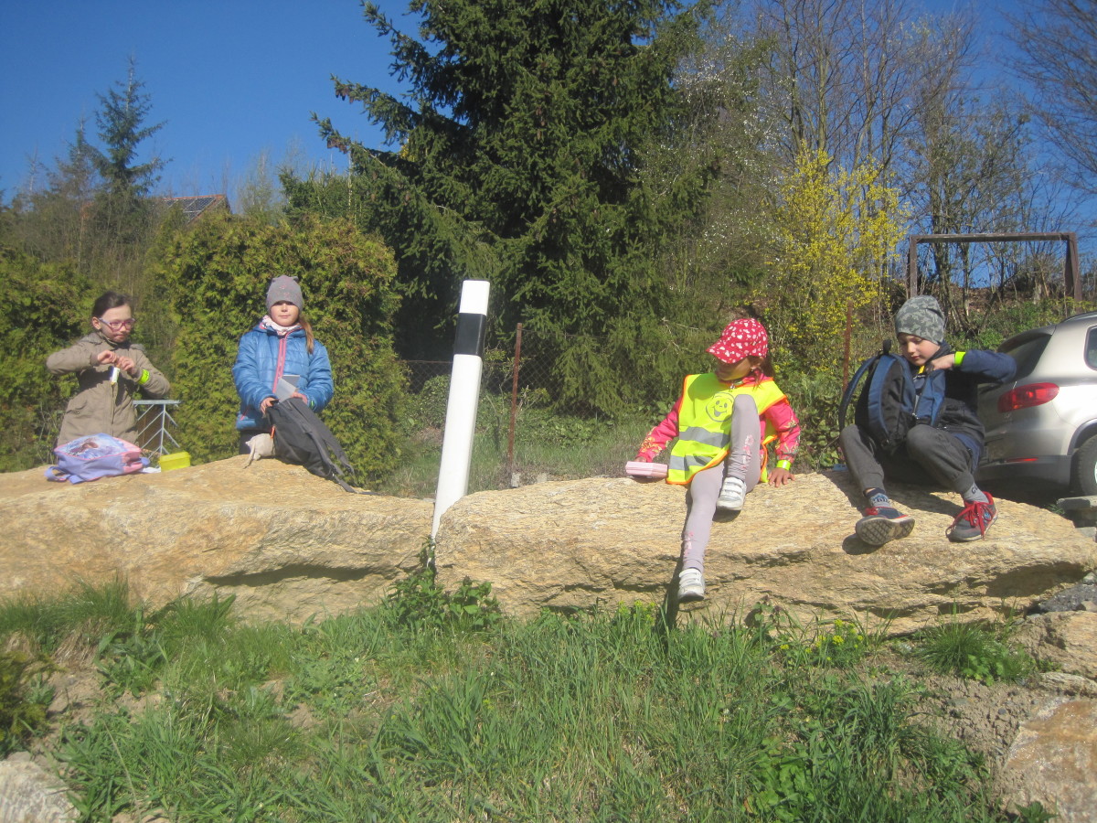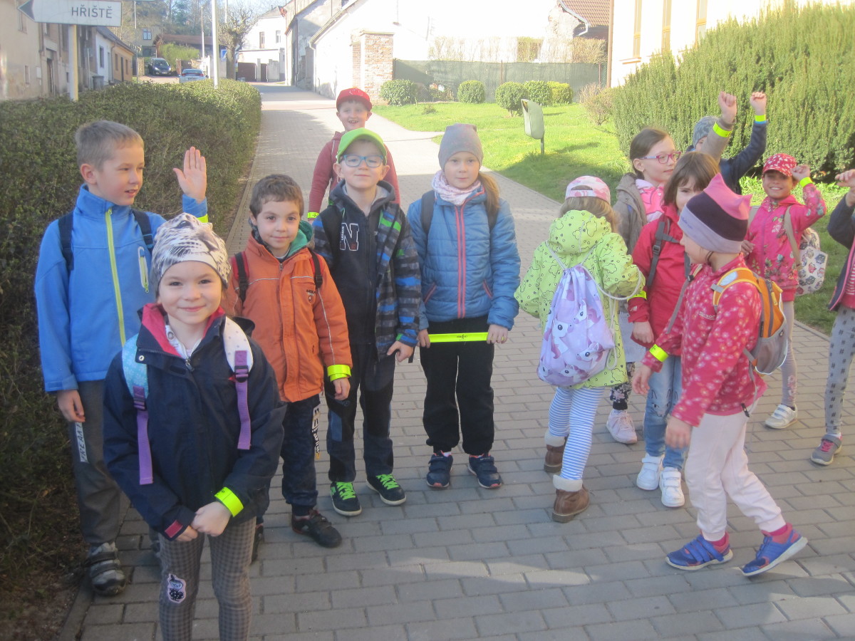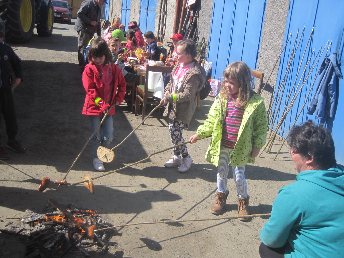 Dne 17. dubna žáci celé naší školy uklízeli okolí, my nejmenší jsme šli na vycházku do přírody, kde jsme plnili mnoho úkolů. Vše jsme zakončili opékáním buřtů, na které nás pozval pan starosta Ondřej Havlovic. Děkujeme i dalším zaměstnancům OÚ za pomoc při opékání.