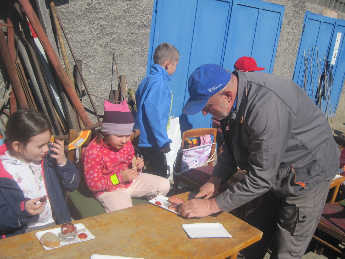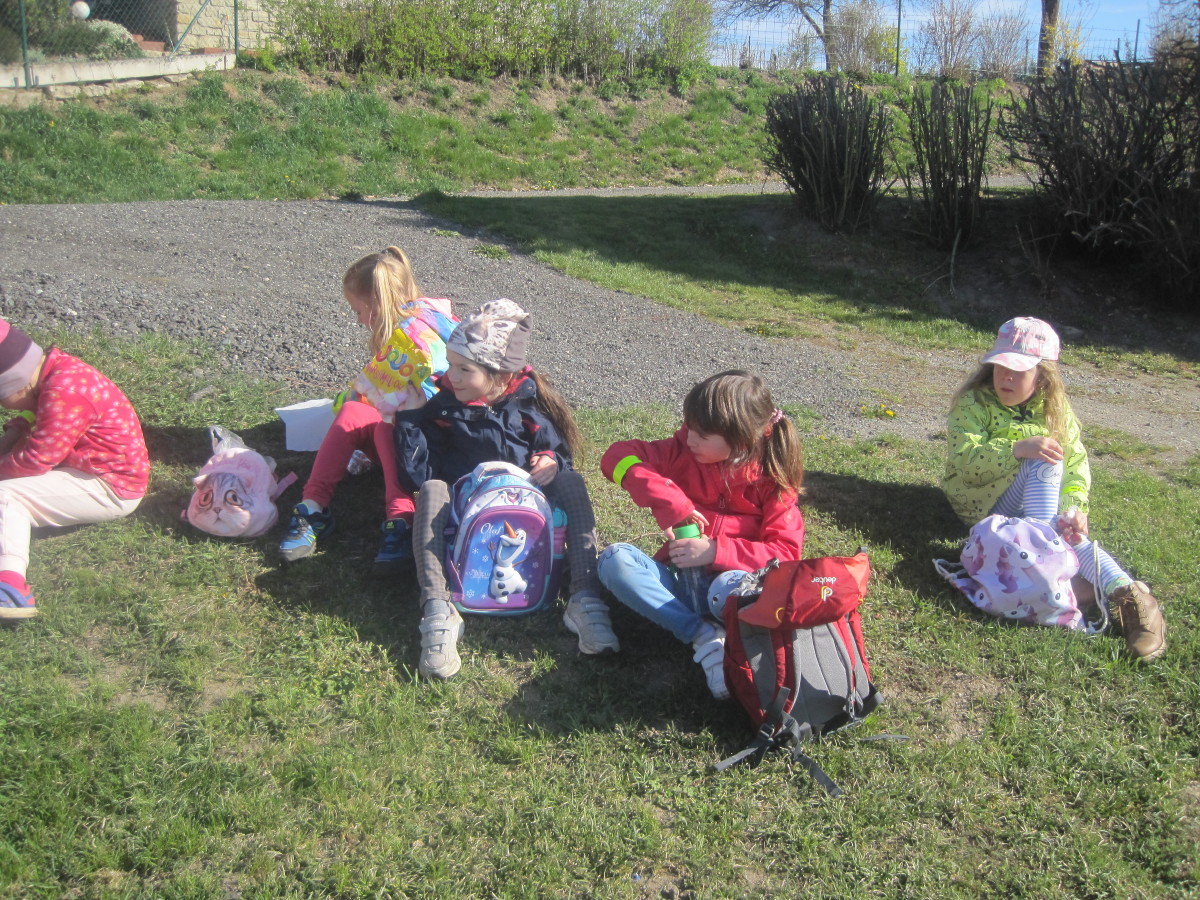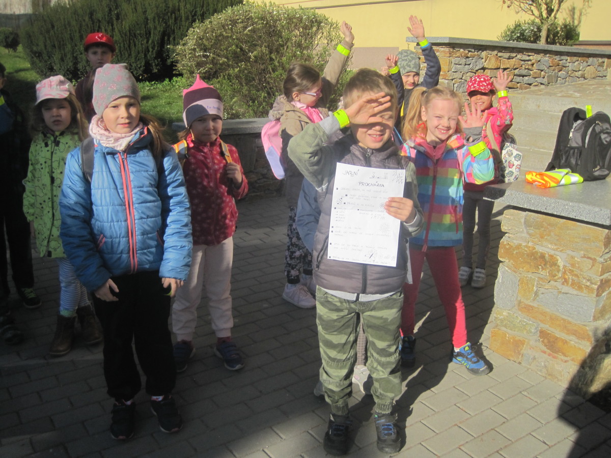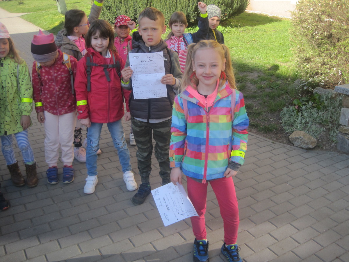 Dne 17. dubna žáci celé naší školy uklízeli okolí, my nejmenší jsme šli na vycházku do přírody, kde jsme plnili mnoho úkolů. Vše jsme zakončili opékáním buřtů, na které nás pozval pan starosta Ondřej Havlovic. Děkujeme i dalším zaměstnancům OÚ za pomoc při opékání.
