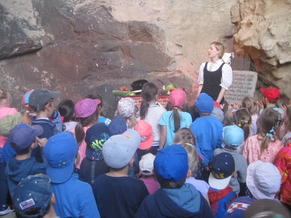 27. května jela 1. třída na školní výlet na Kunětickou horu a do Perníkové chaloupky. Divadelní spolek Marka Dobrodinského nám zahrál muzikálovou pohádku "Jak se peče písnička".Celý výlet se nám moc líbil a nebáli jsme se ani vousaté Ježibaby. Všechny děti chválím za jejich chování. Děkuji paní Přenosilové za pomoc.