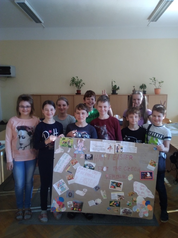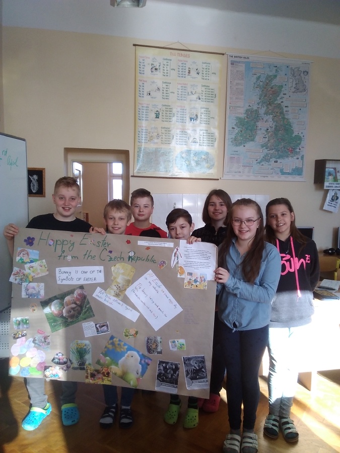 Po dohodě s naší spřátelenou základní školou z Polska jsme se rozhodli se vzájemně seznámit s tradicemi a zvyky, které se dodržují v našich zemích o Velikonocích. Žáci 5. třídy vytvořili dva velkoformátové plakáty s popisem českých velikonočních tradic, zvyků, ale i některých receptů v angličtině. Kromě toho poputuje do Polska také krátká velikonoční prezentace v Power pointu. Na oplátku se i my můžeme těšit na výtvory z Polska, jejichž prostřednictvím se dozvíme něco o velikonočních zvycích našich severních sousedů.