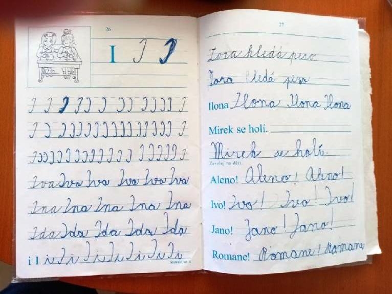Počítala jsem M, psaní , čtení a básničku ve Slabikáři.
