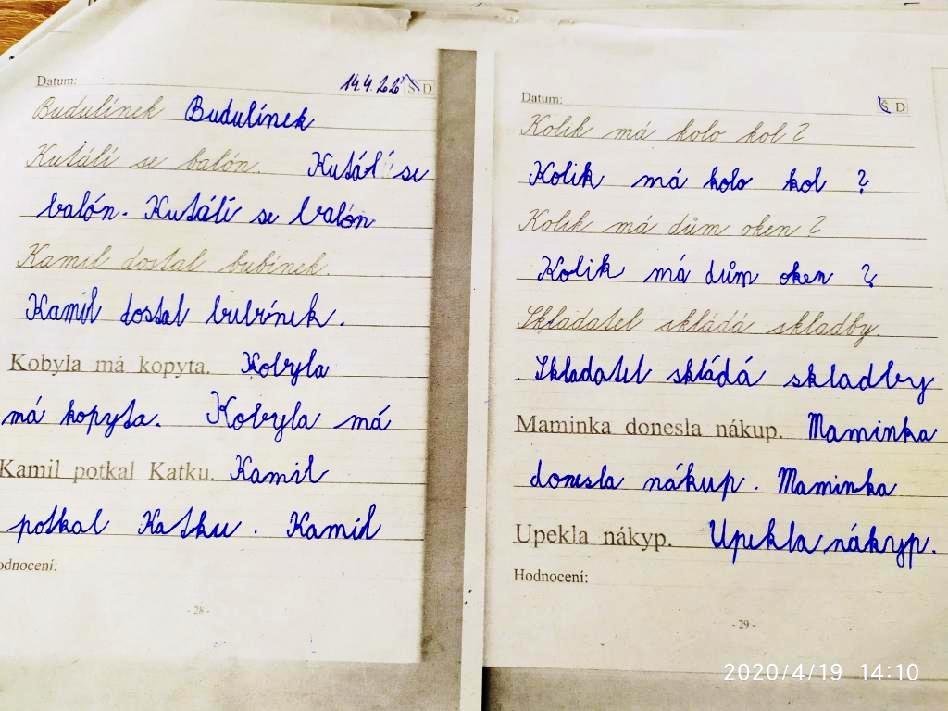 dnes jsme dodělali M, PRV,psaní v cvičném sešitu , ještě budu číst a mám hotovo.