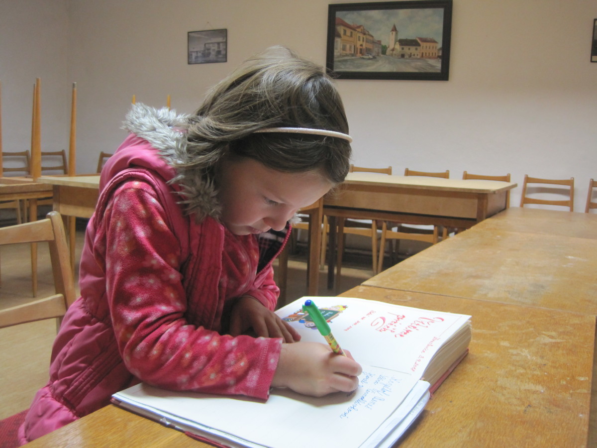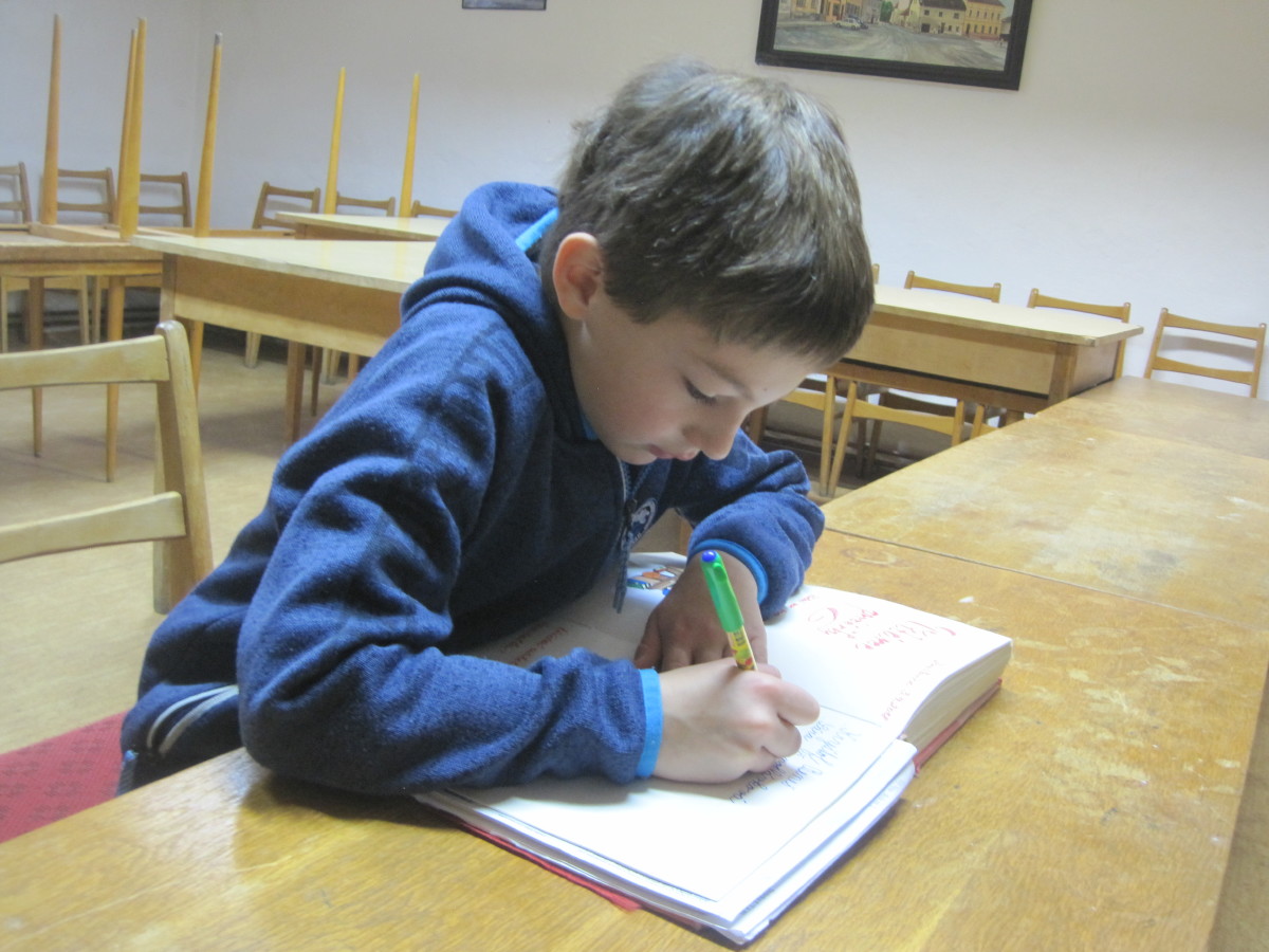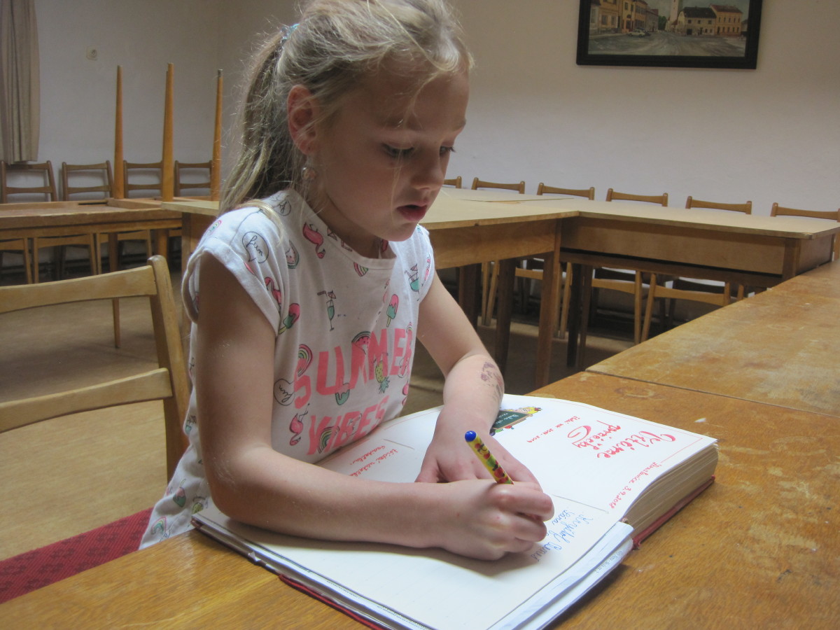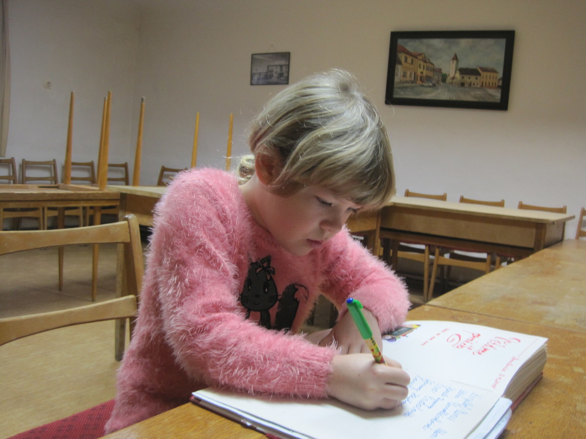 " Už jsme školáci, už umíme číst, psát, počítat ... " a cílem naší návštěvy na Obecním úřadě ve Zbraslavicích byly naše podpisy do pamětní knihy.
