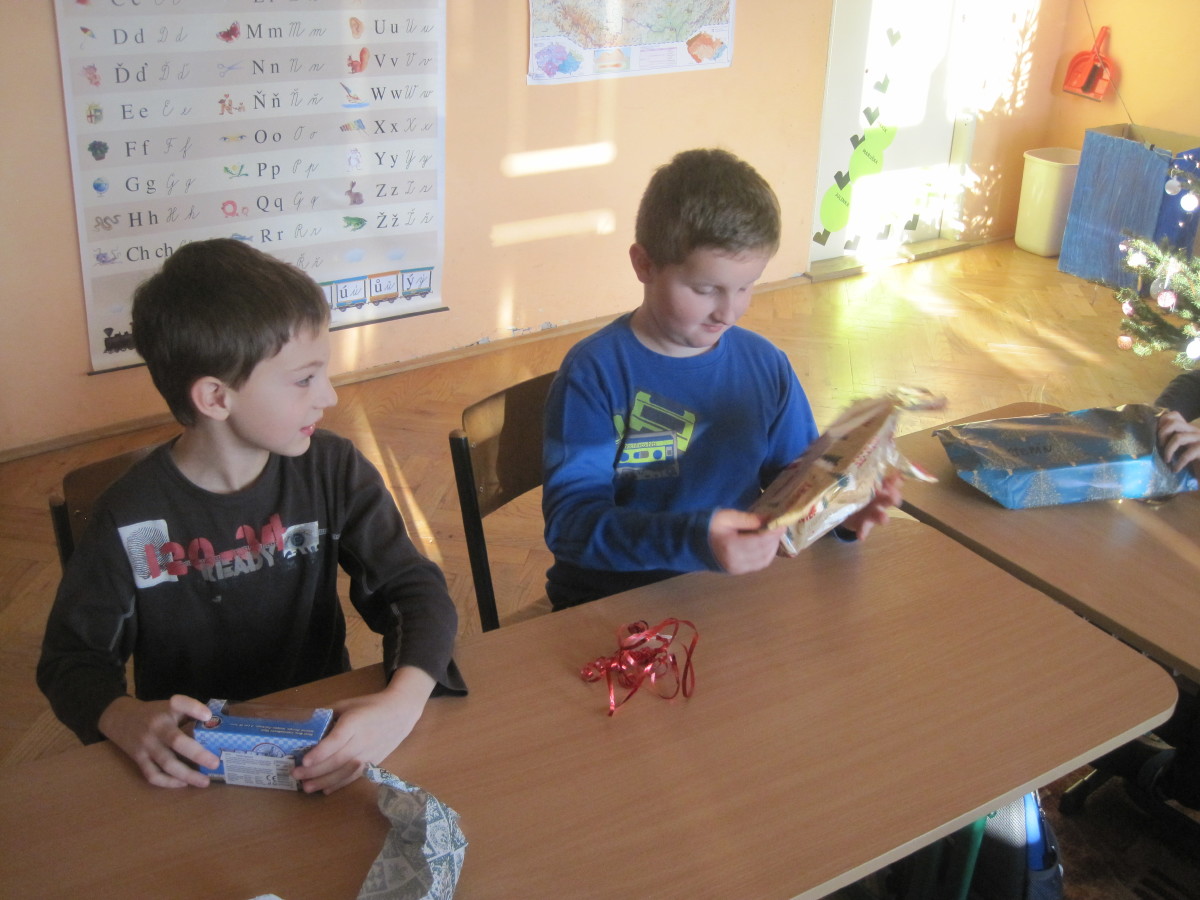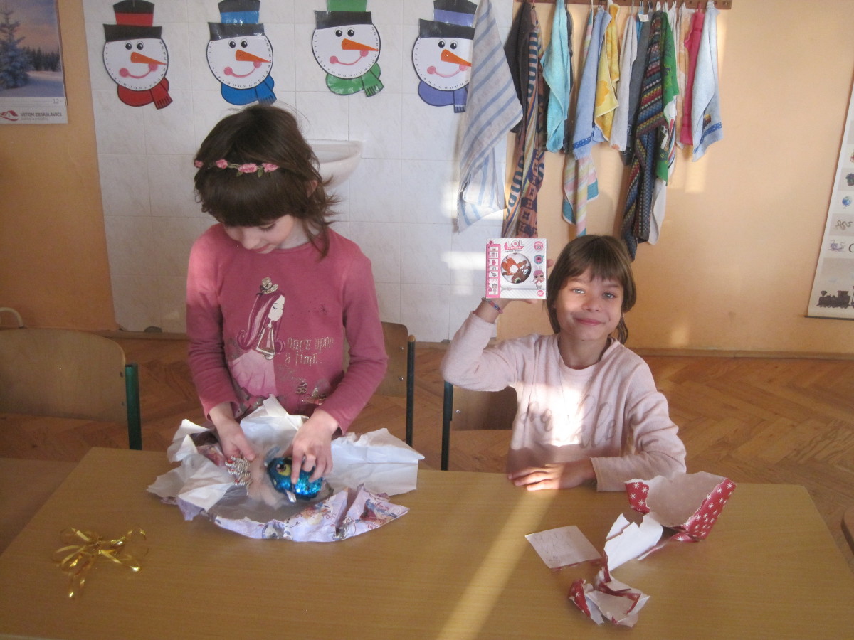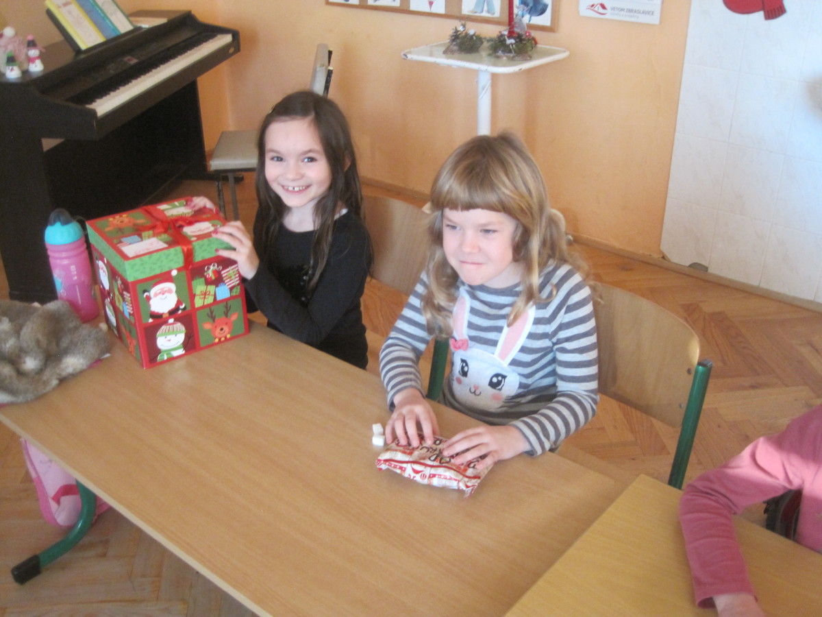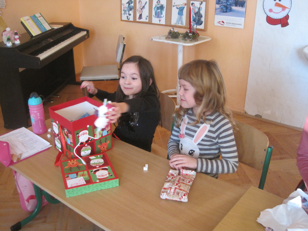 Poslední den ve škole jsme si hráli, zpívali, oslavovali a rozbalovali dárečky.