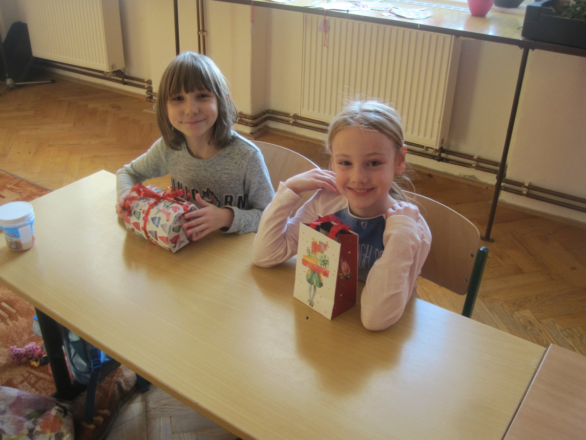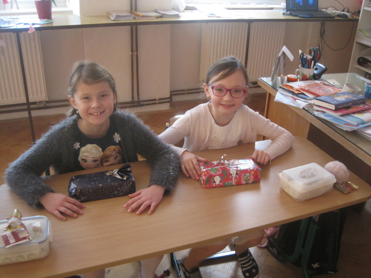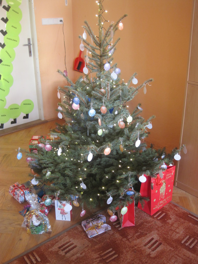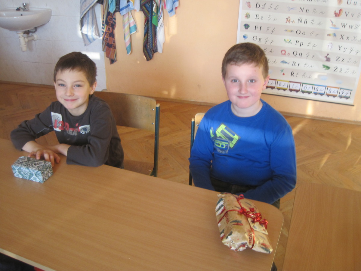 Poslední den ve škole jsme si hráli, zpívali, oslavovali a rozbalovali dárečky.