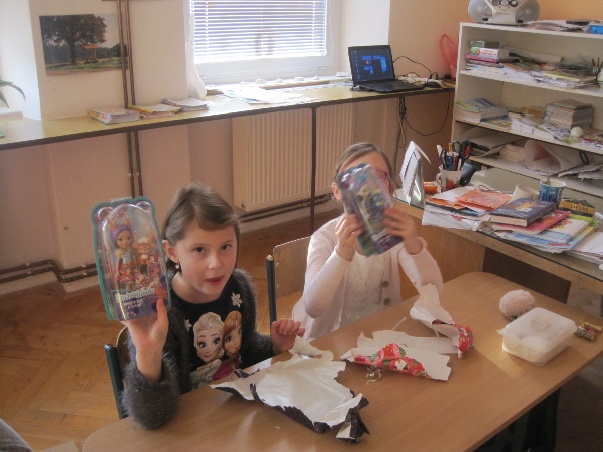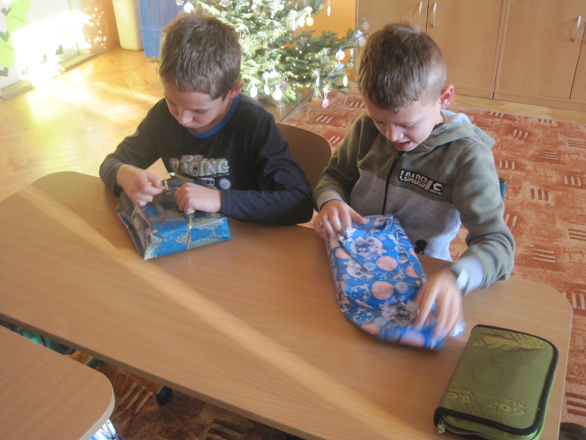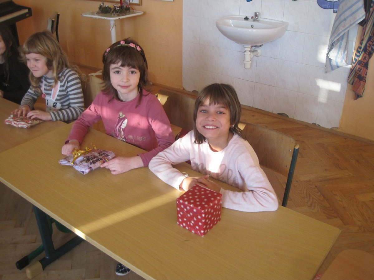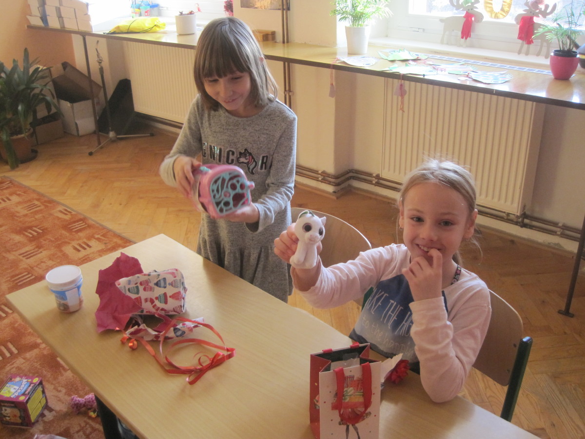 Poslední den ve škole jsme si hráli, zpívali, oslavovali a rozbalovali dárečky.