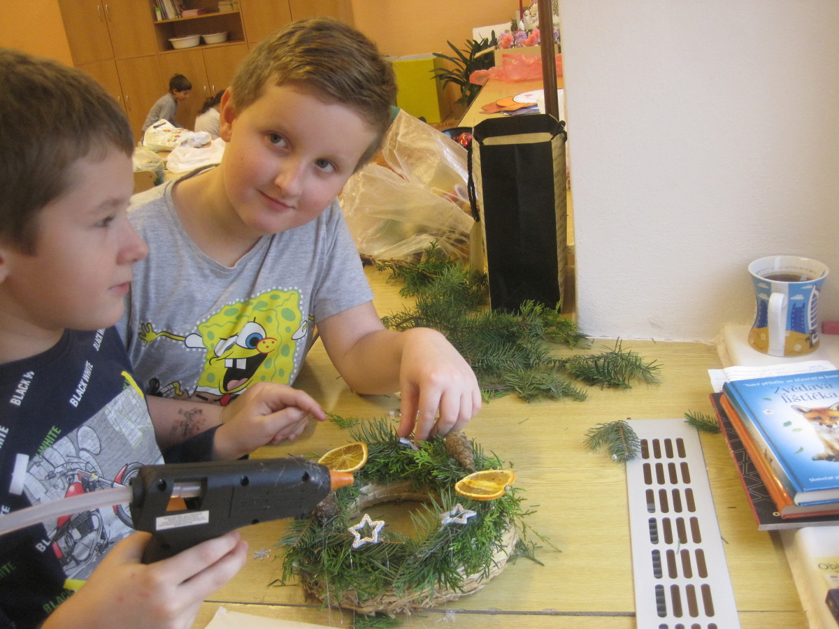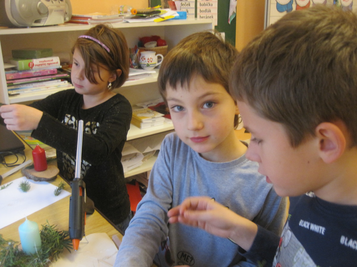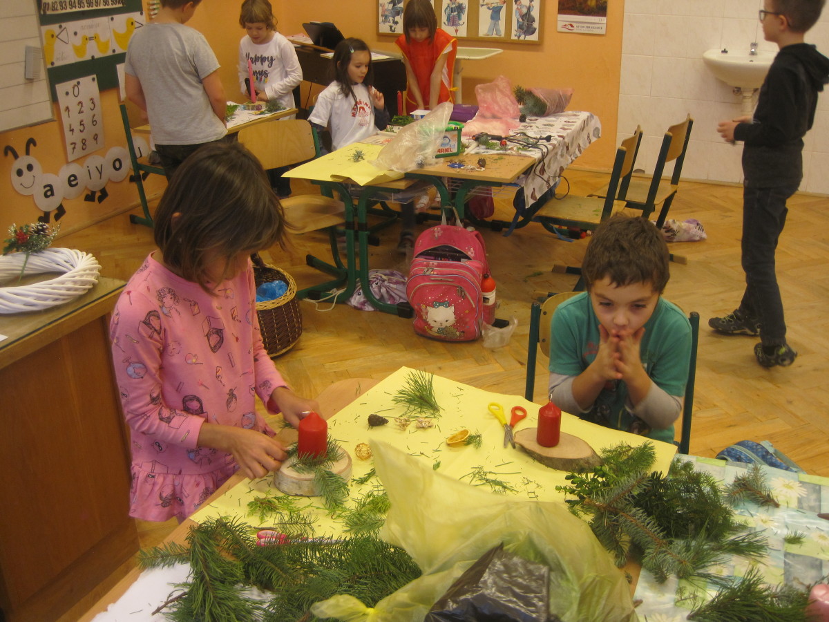 My druháci jsme vyráběli adventní věnce, svícny a adventní kalendáře.