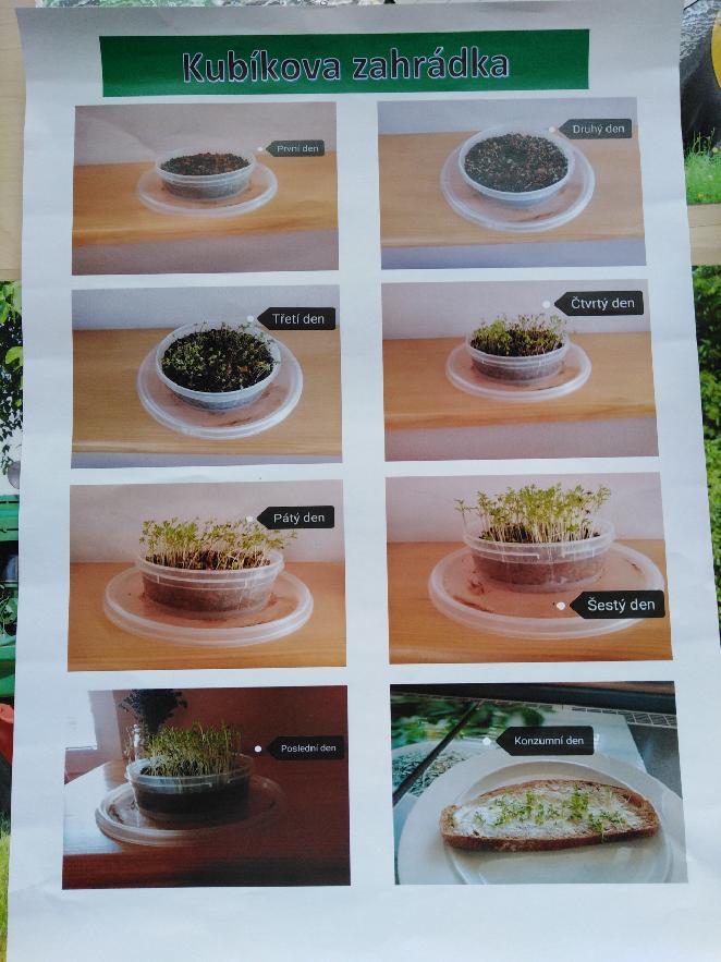 Pomůcky: průhledný kelímek, zemina, semínka řeřichy, hrachu, fazole