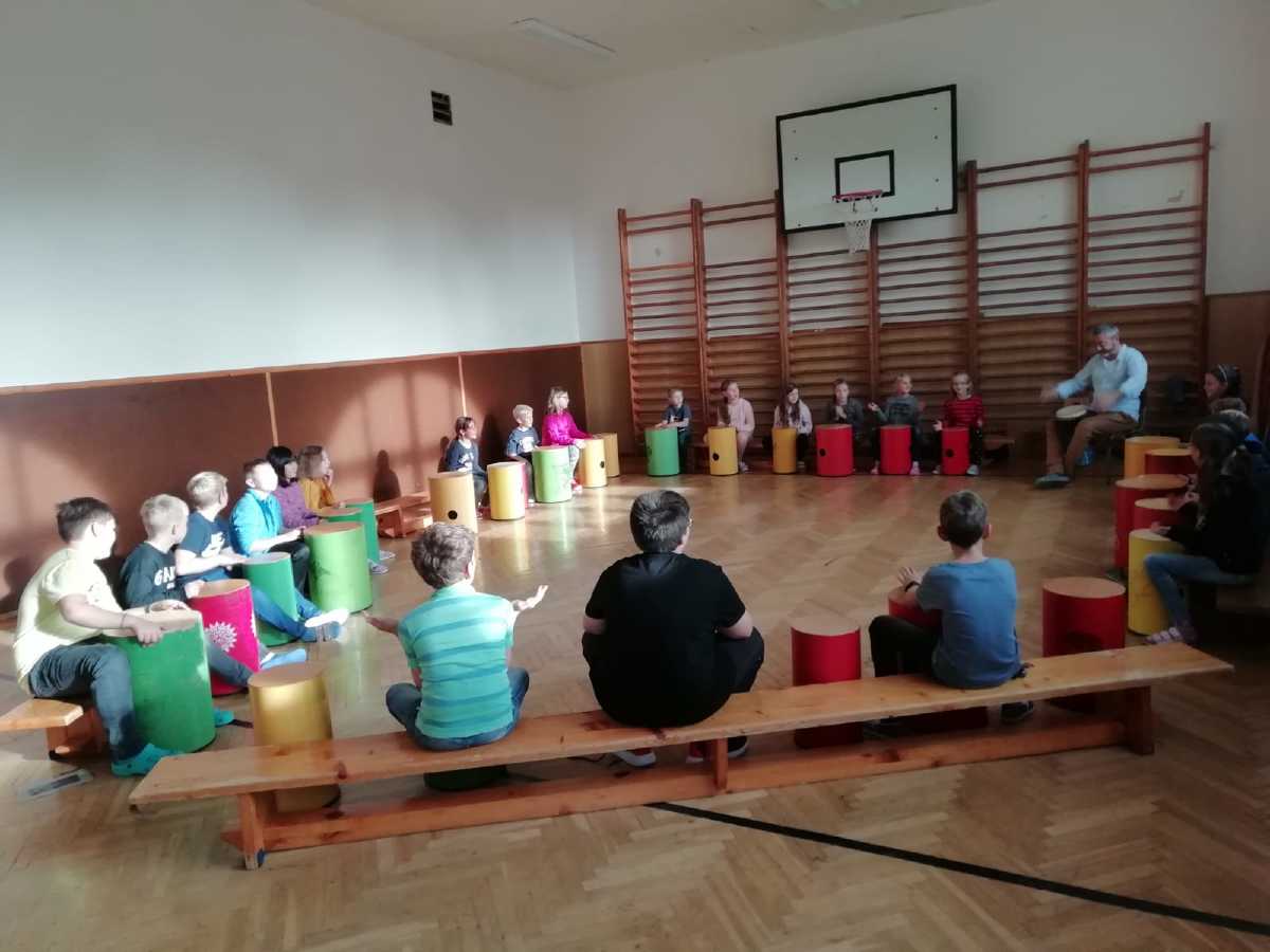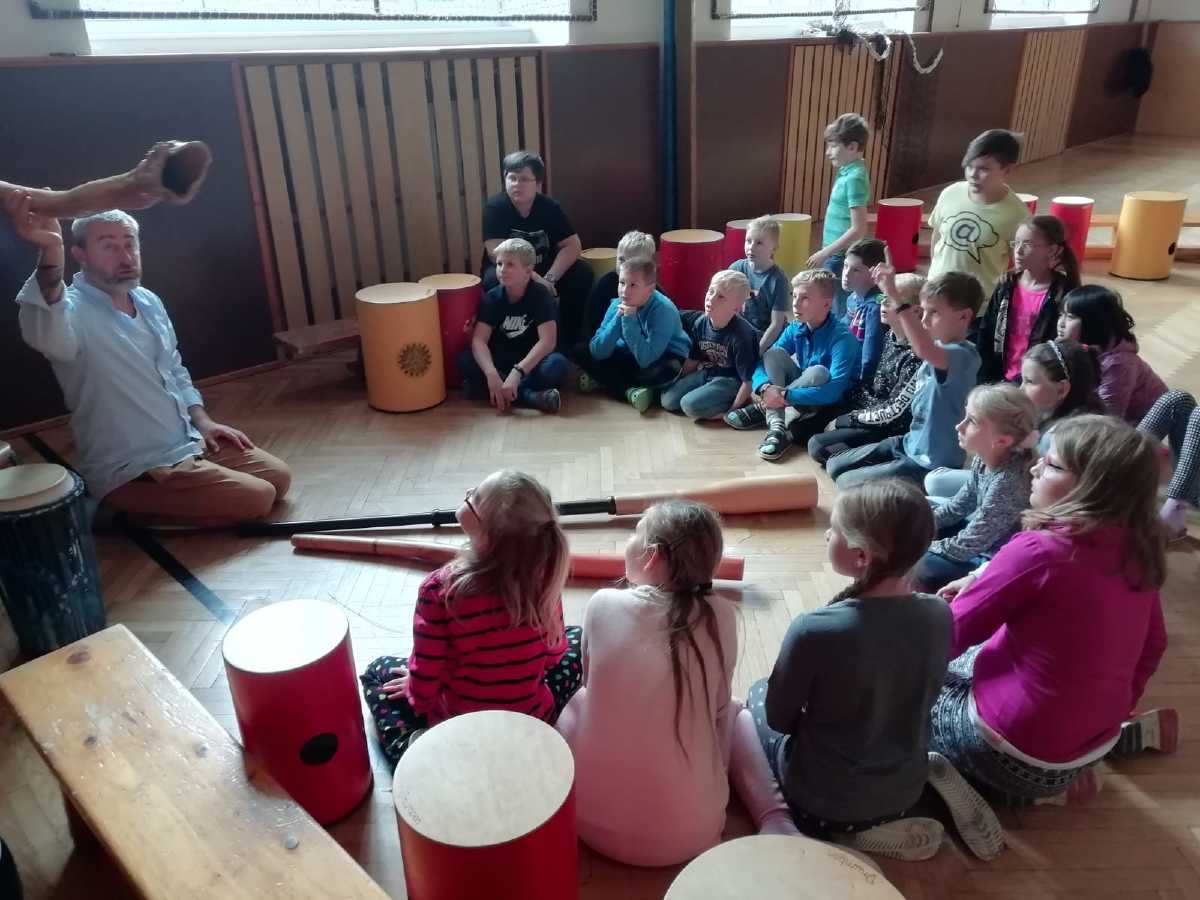 Ve čtvrtek 10. října 2019 proběhl v naší tělocvičně interaktivní workshop bubnování