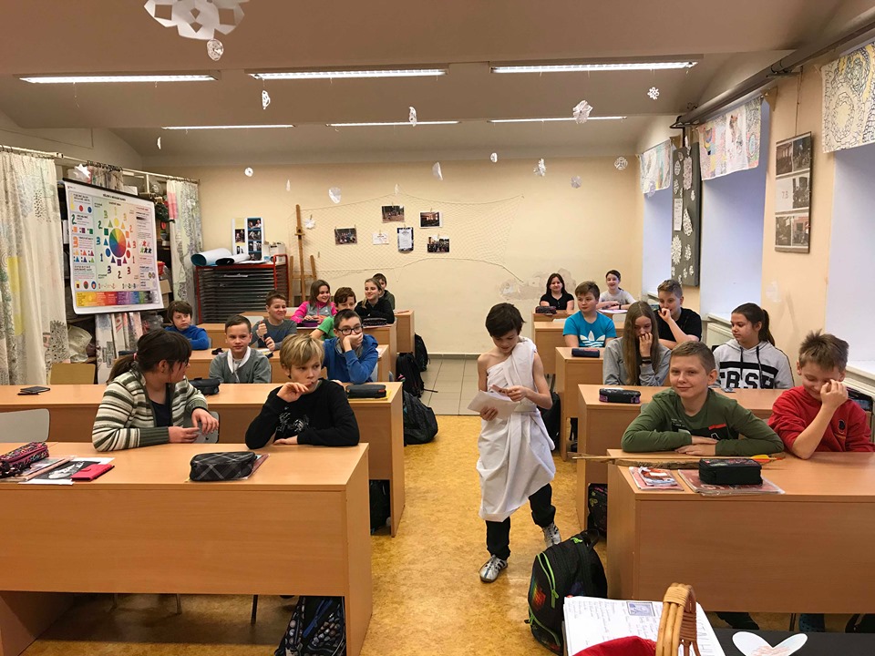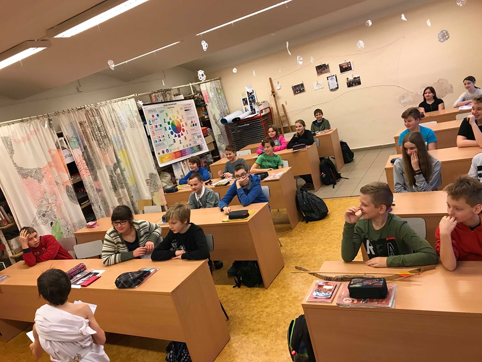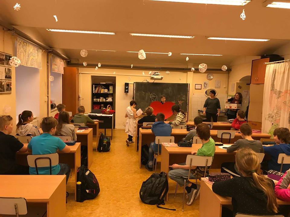 Na svátek sv. Valentýna do šesté třídy zavítal AMOREK a obdaroval žáky valentýnskou poštou.