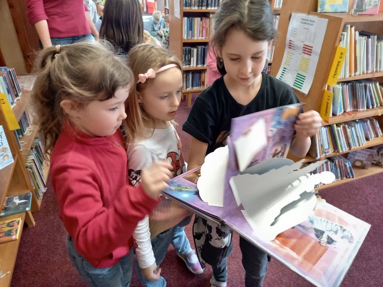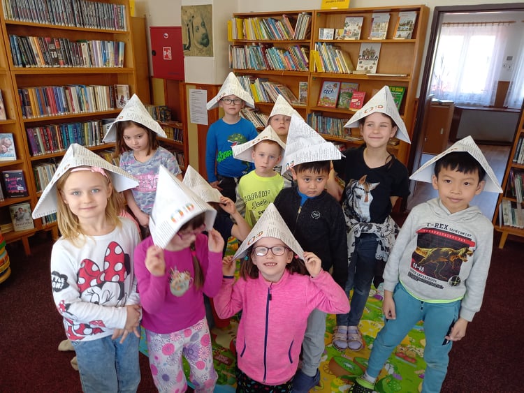 Ve středu 23. 3. jsme poprvé navštívili knihovnu ve Zbraslavicích. Povídali jsme si o tom, jak se v knihovně chovat a jak s knihami zacházet. Jako překvapení pro nás paní knihovnice připravila skládání papírové čepice.