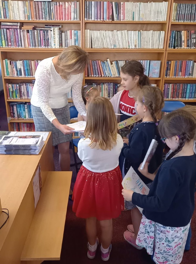 Tentokrát si s sebou děti nesly knihu Johana s dlouhýma nohama. Nejprve jsme knihu paní knihovnici představili. Děti odvyprávěly, co už o knize víme a část jsme si společně přečetli. Žáci zazpívali písničku o Johaně a předali paní knihovnici obrázky, které ke knize nakreslili ve škole.