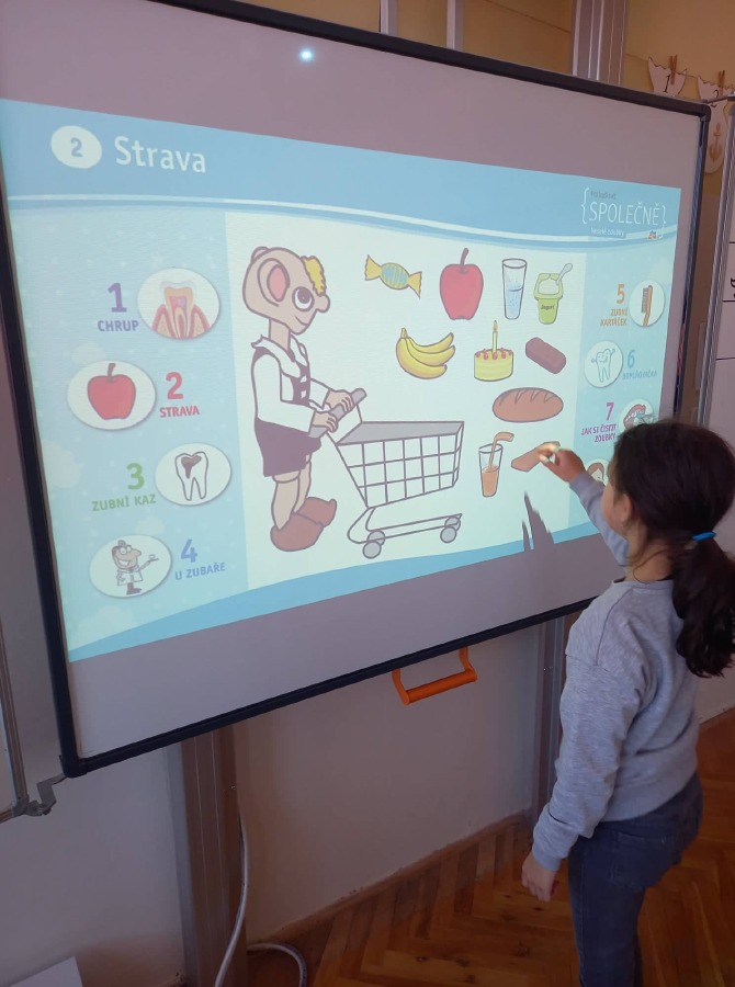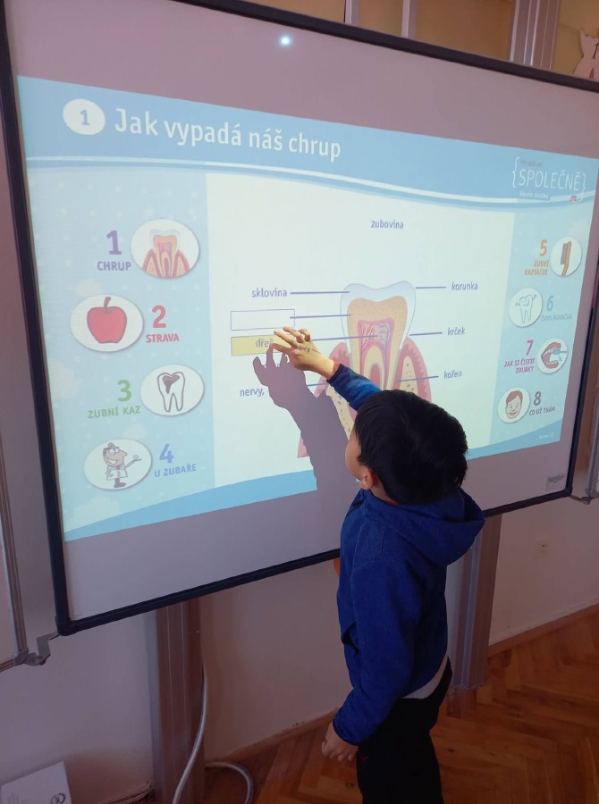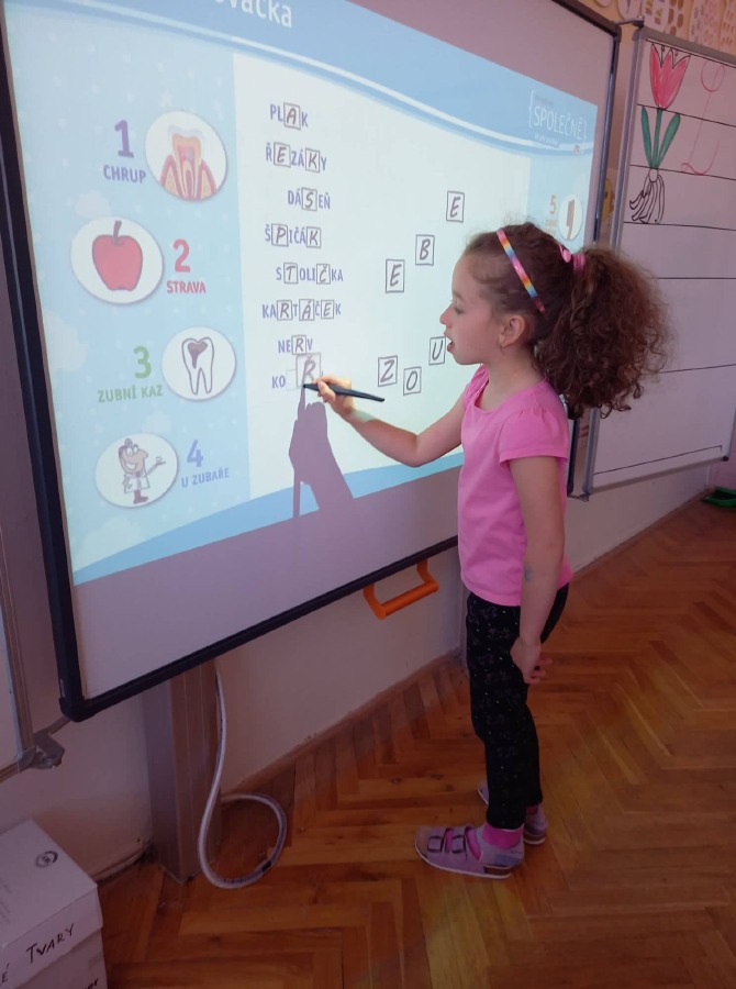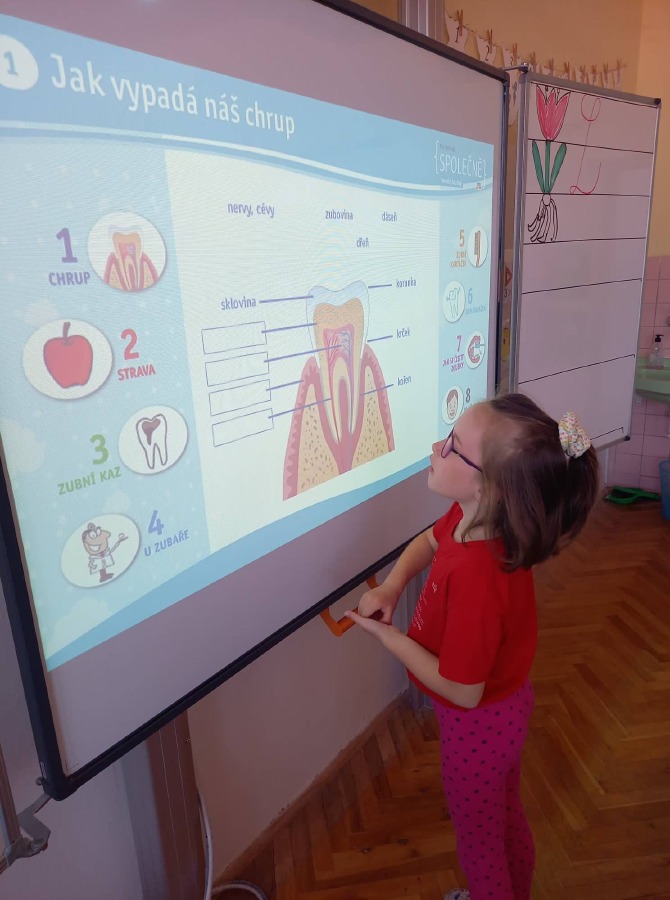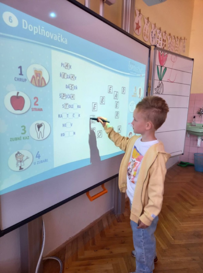 Děti si připomněly, jaký je správný postup při čištění zubů, seznámily se dokonce i se stavbou zubu. Podívali jsme se na pohádku "Jak se dostat Hurvínkovi na zoubek" a po splnění různých kvízů, luštěnek a spojovaček si děti zasloužily odměnu. Každý si dnes s velkou radostí odnesl domů balíček s kartáčkem, pastou a dalšími drobnostmi.