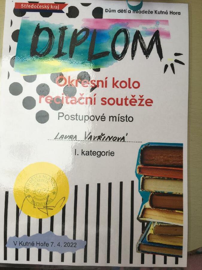 v okresním kole recitační soutěže v Kutné Hoře.