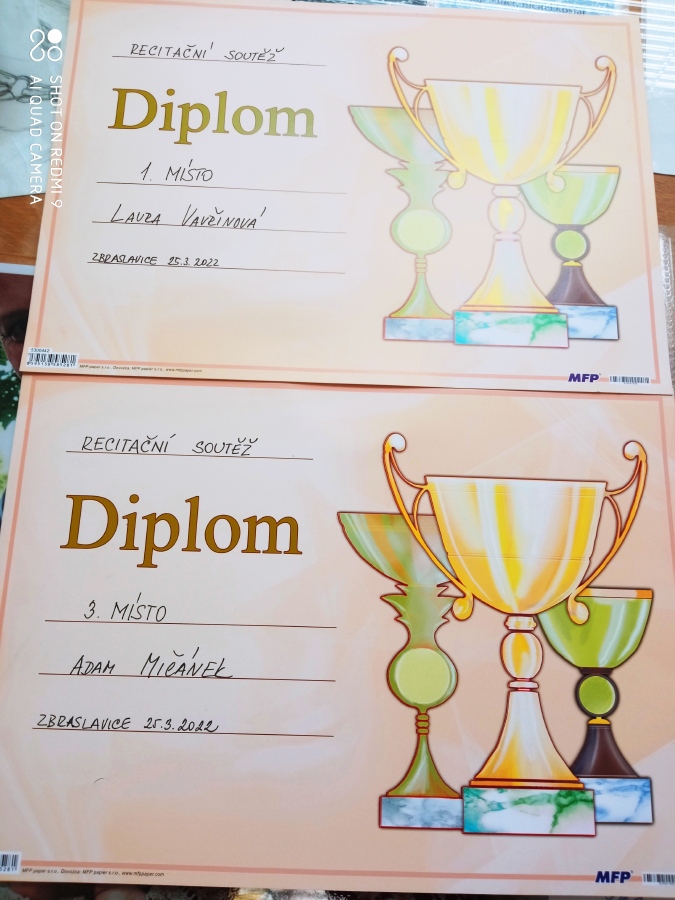 Poděkování náleží i paní učitelkám A.Křenovské a J.Kulíkové za přípravu školního kola recitační soutěže.