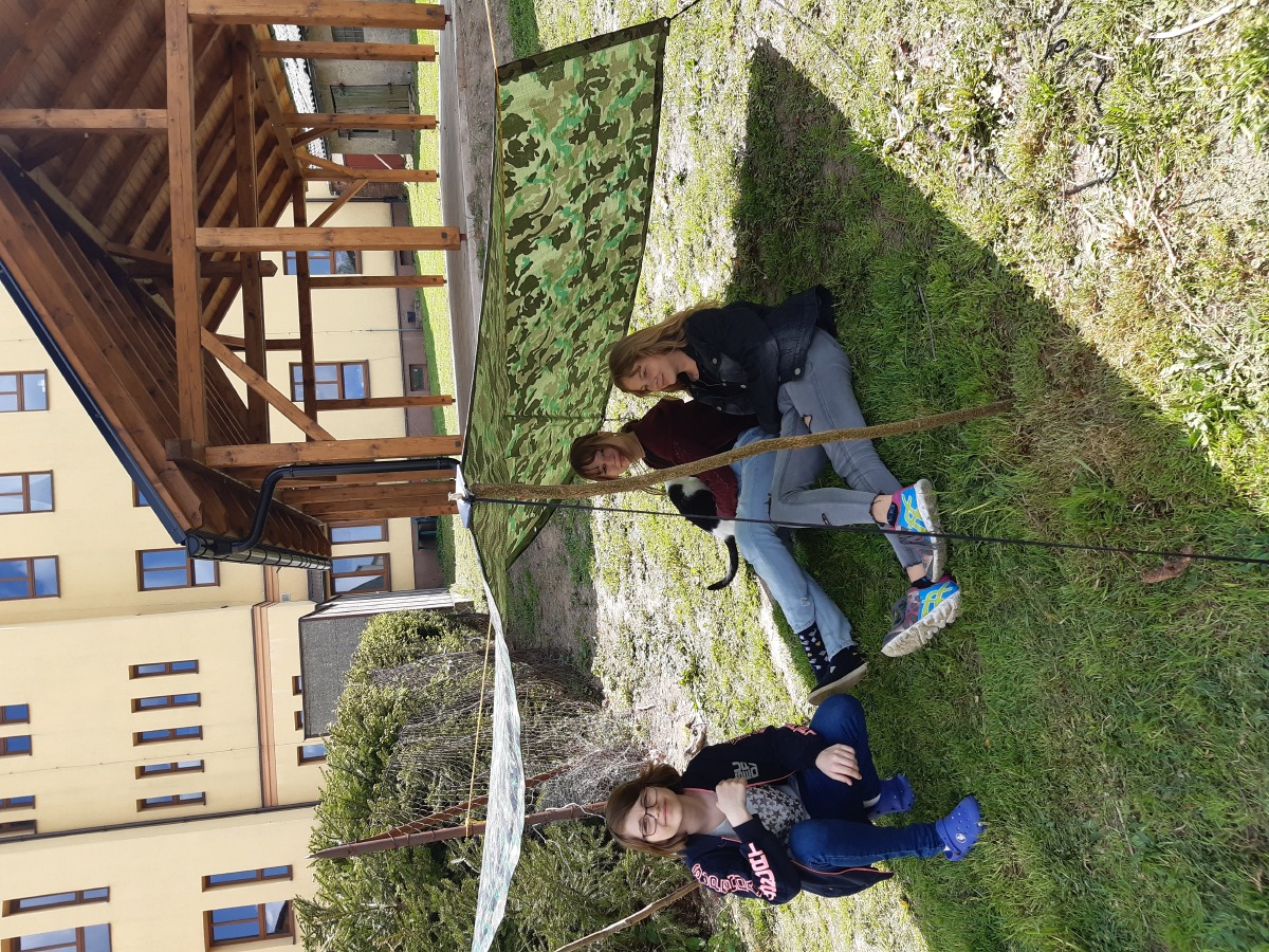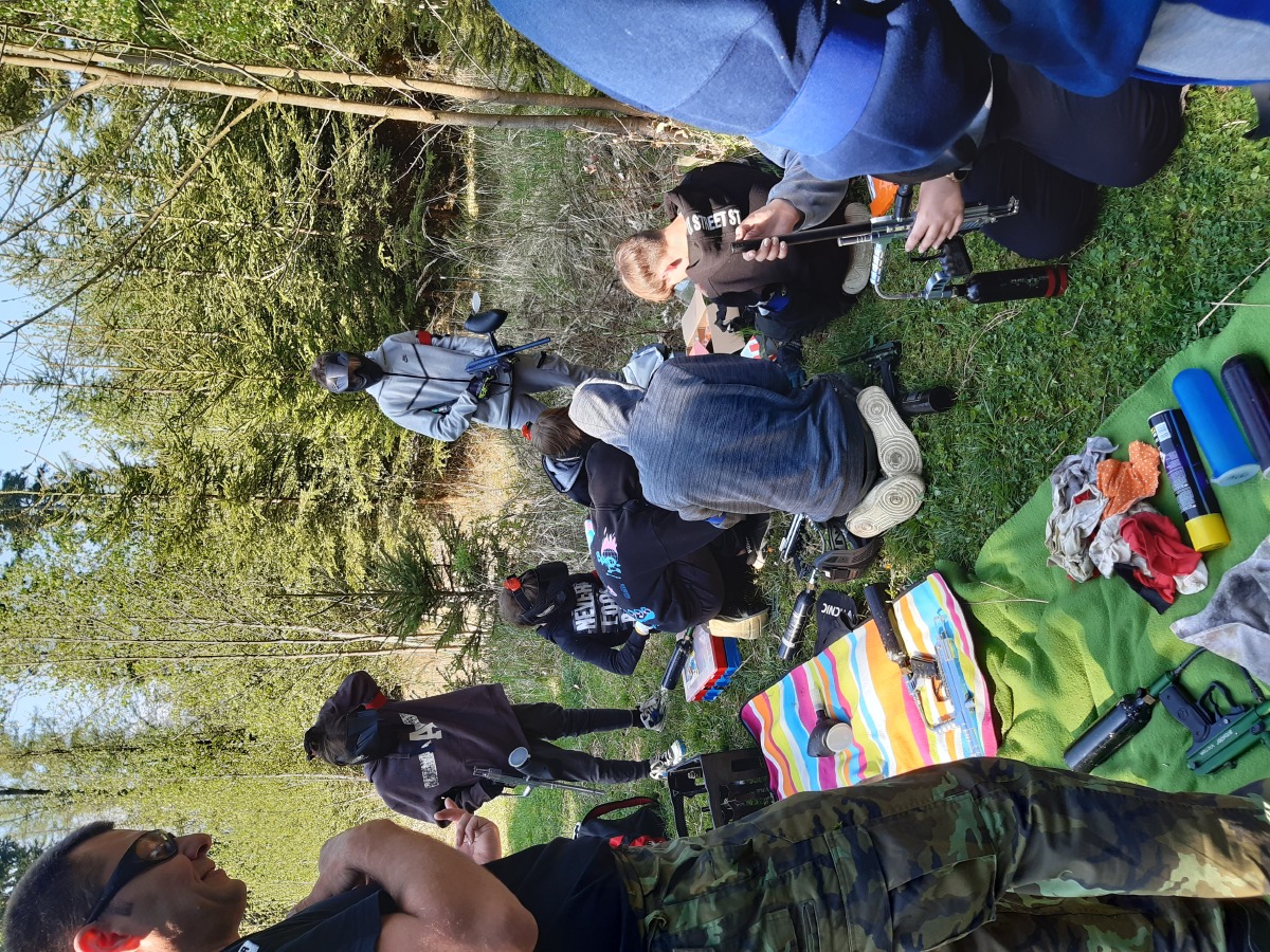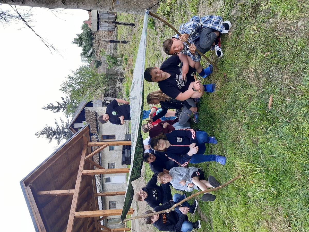Branný den - počasí přálo při paintballu a plnění úkolů spojených s mimořádnými událostmi. Při cestě jsme se naučili pár uzlů (liščí, ambulanční stp.) Následující den jsme si na zahradě postavili přístřešek a uvařili imaginární gulášovou polévku.