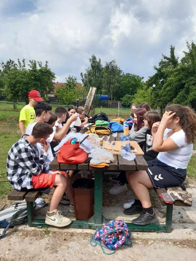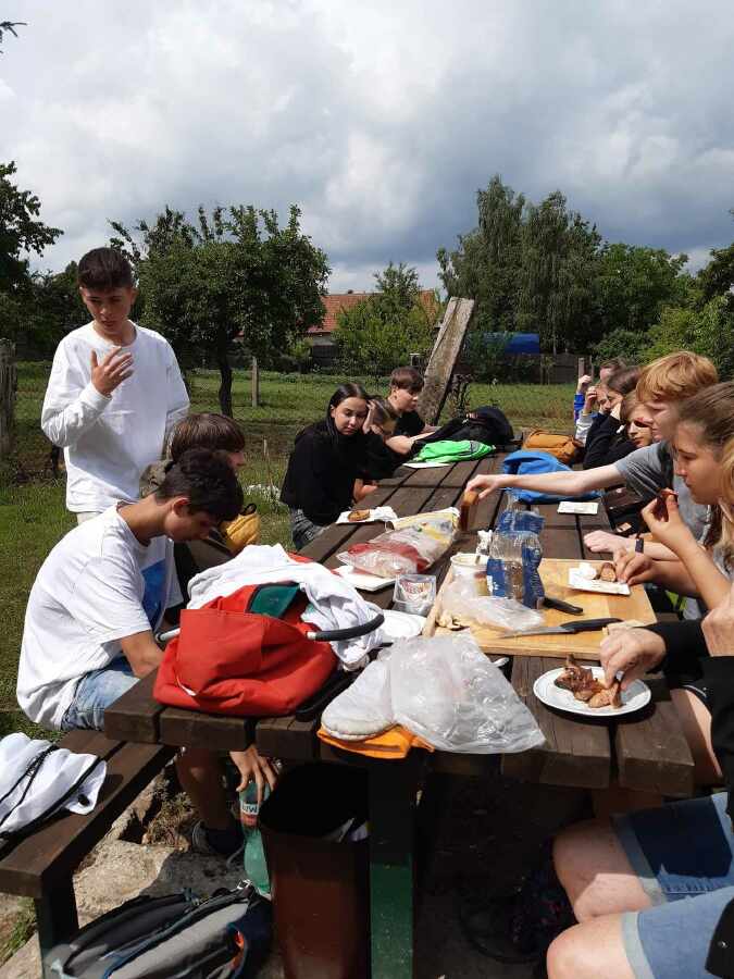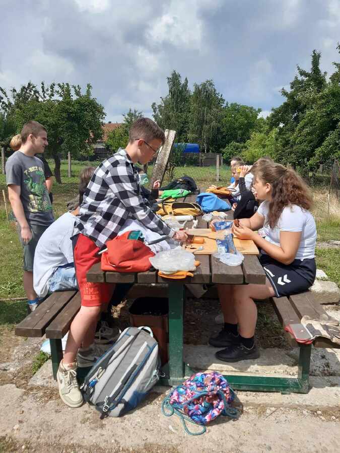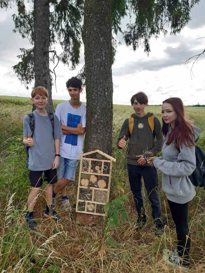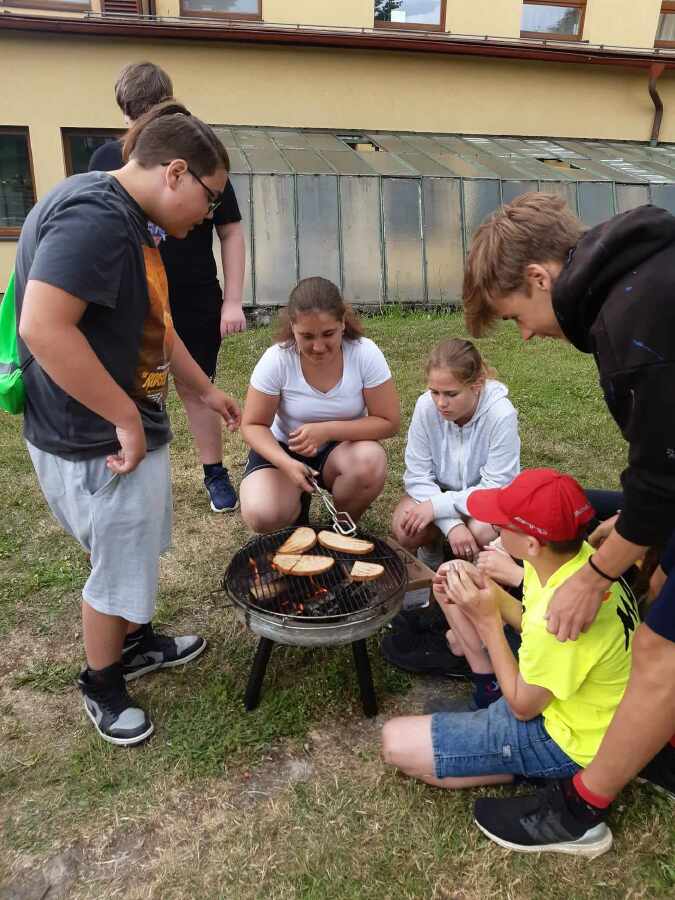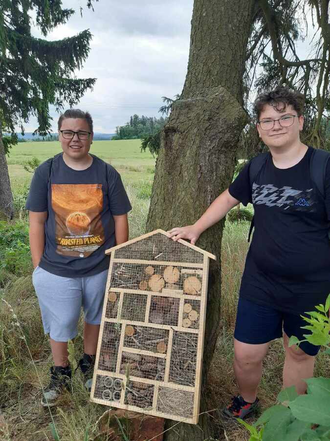 Počasí nám přálo, hmyzí domky jsou upevněné a po procházce opékání na školní zahradě.