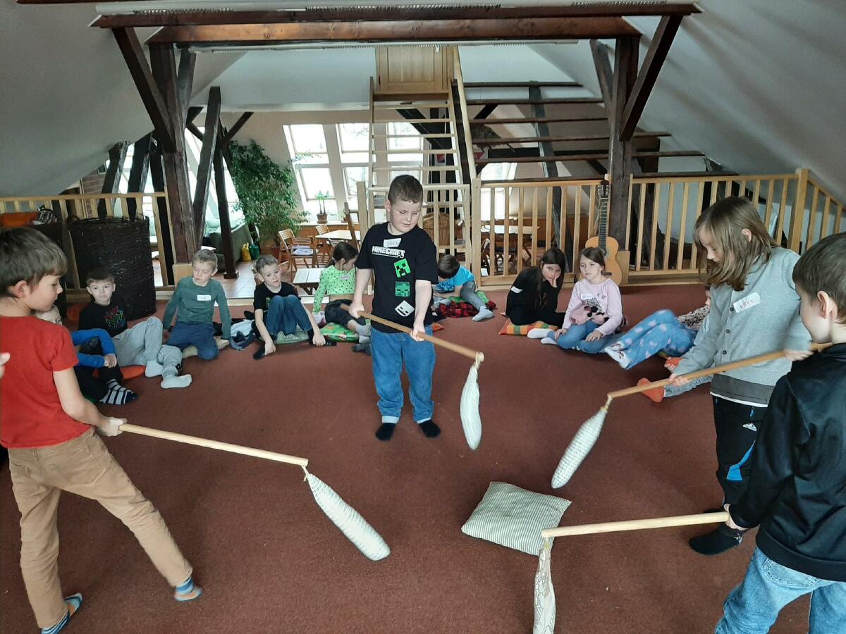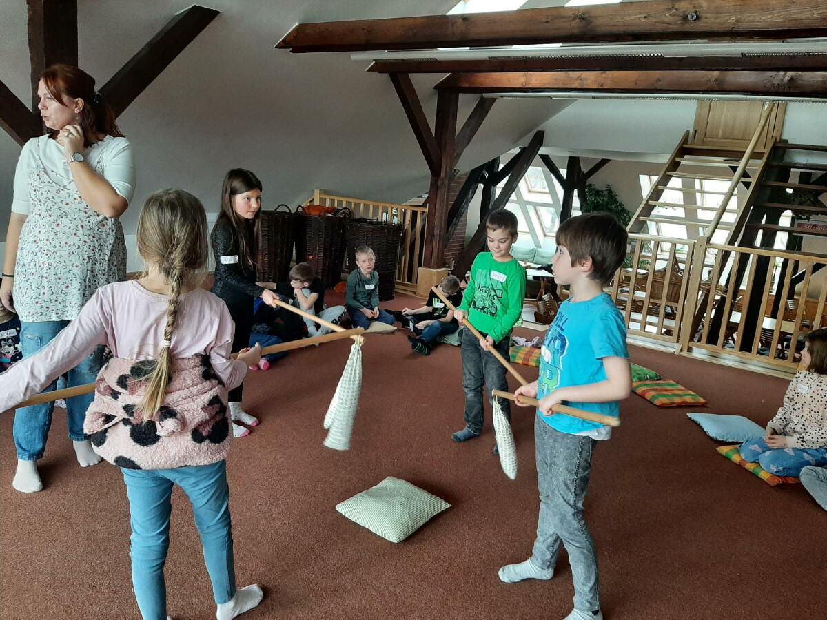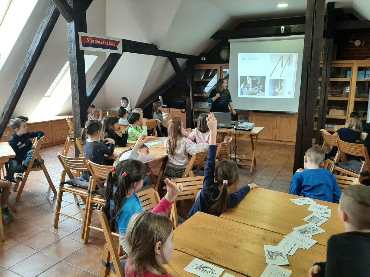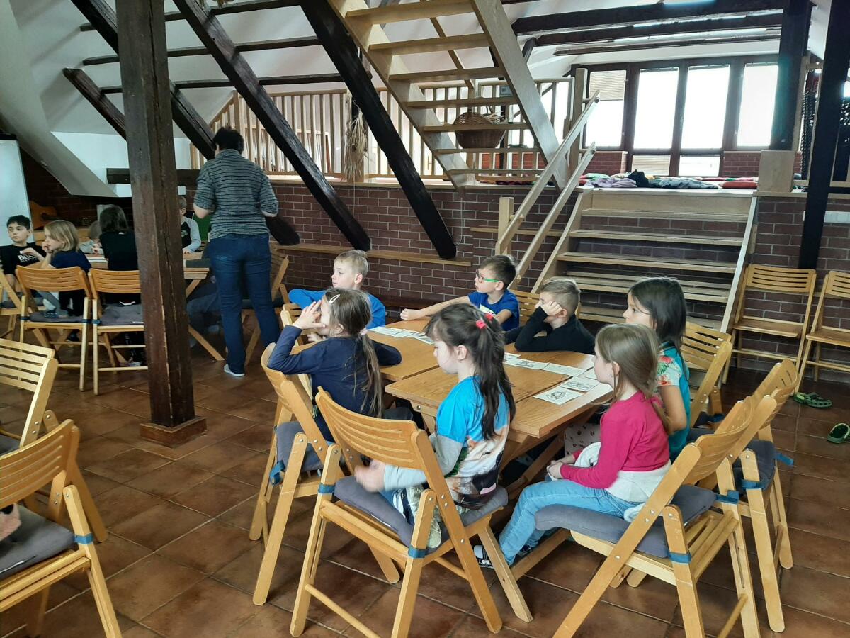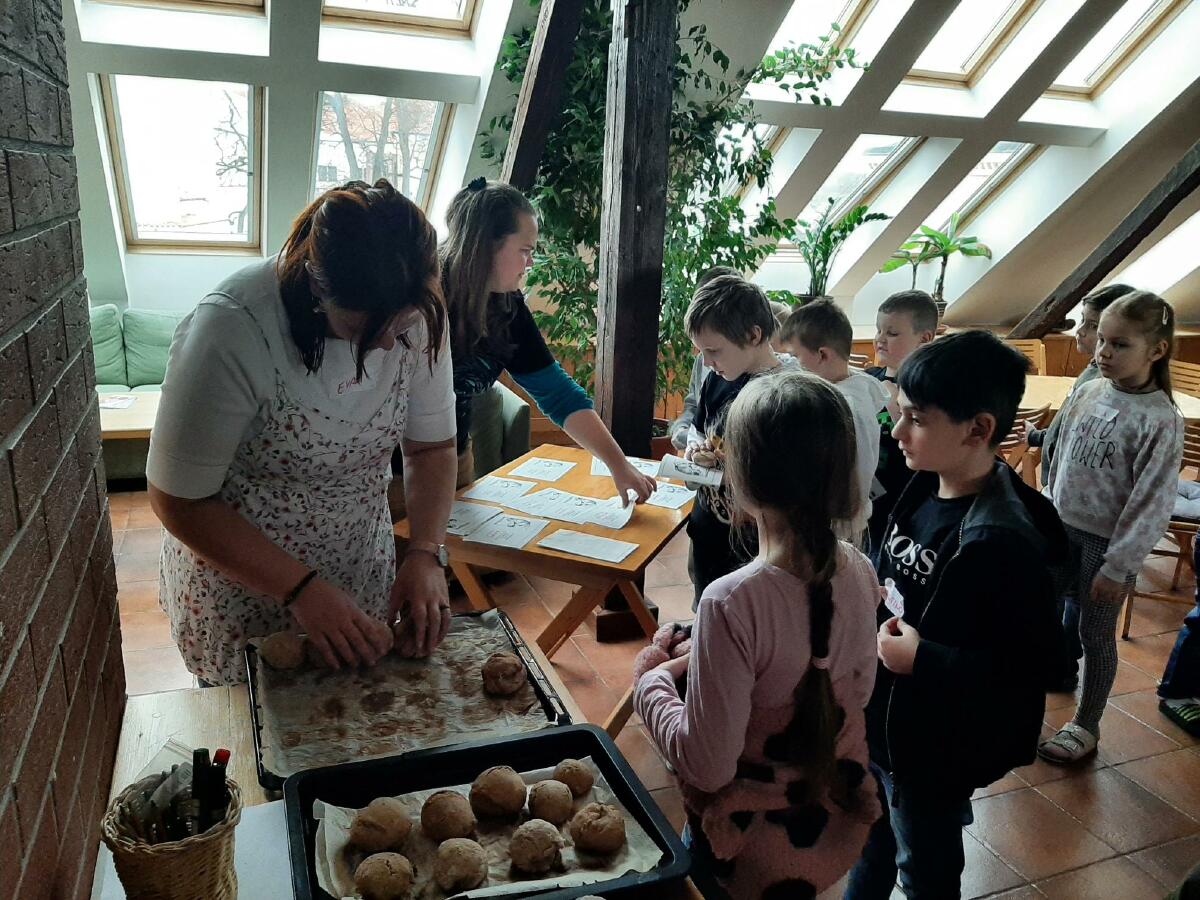 Během 120 min se děti seznámily s dlouhou cestou malého zrníčka až po chleba na náš stůl. Žáci se naučili rozlišovat základní 4 druhy obilí, vyzkoušeli si zadělat těsto, také mlátili obilí cepem. Domů si pak děti vezly recept na chleba a čerstvě upečené malé chlebové bochánky. Celou návštěvu v Ekocentru jsme zakončili nákupem suvenýrků v místním obchůdku.