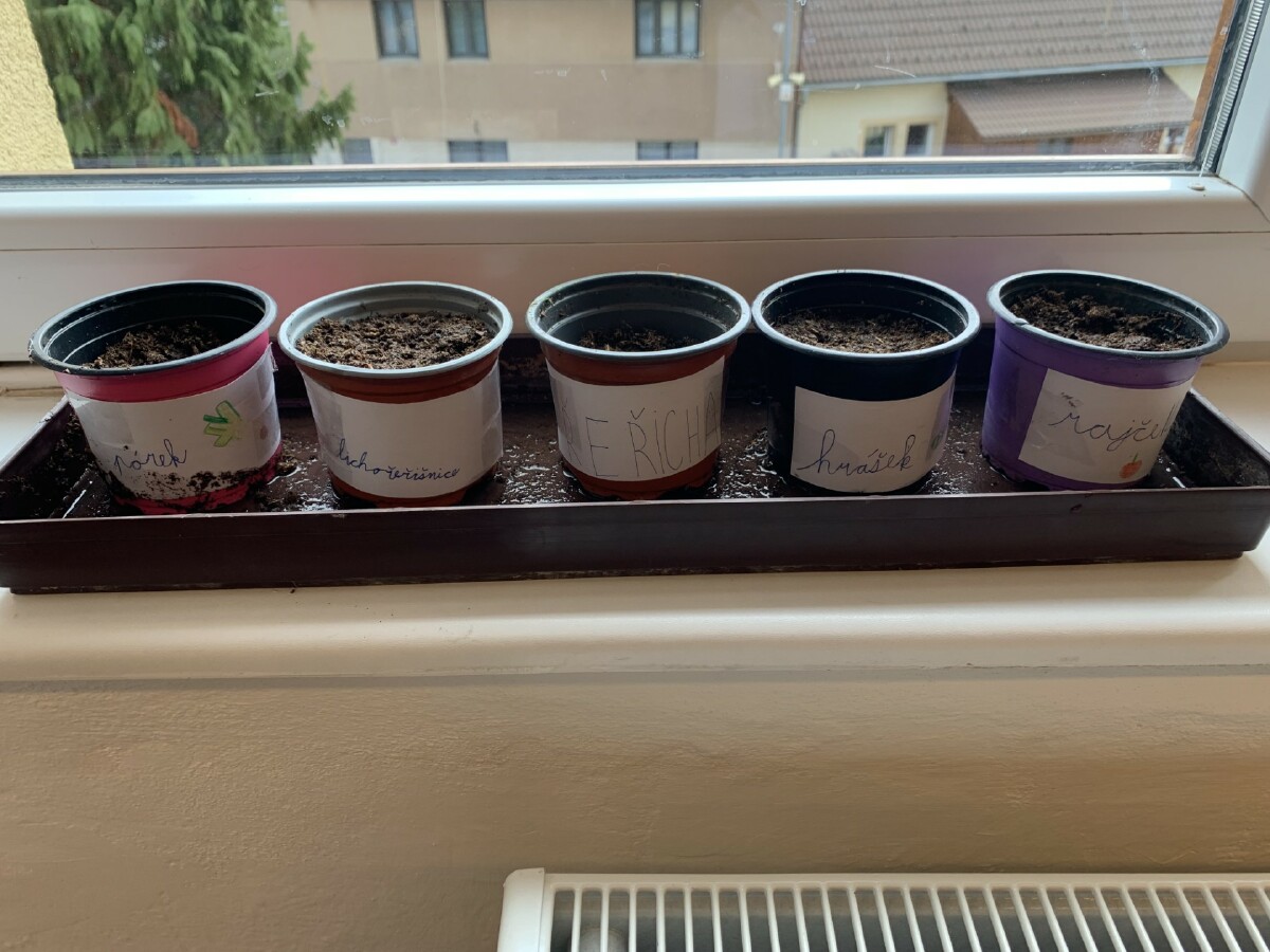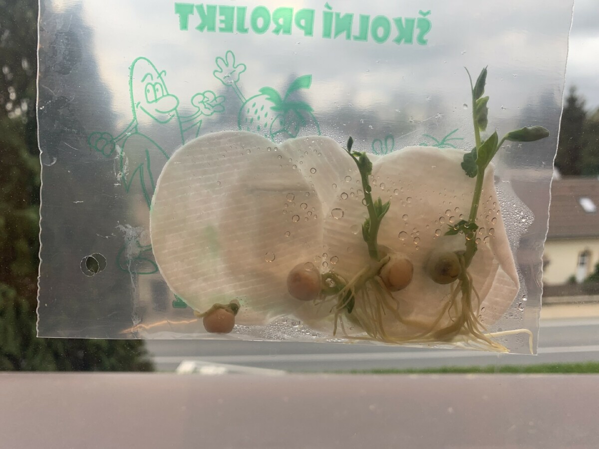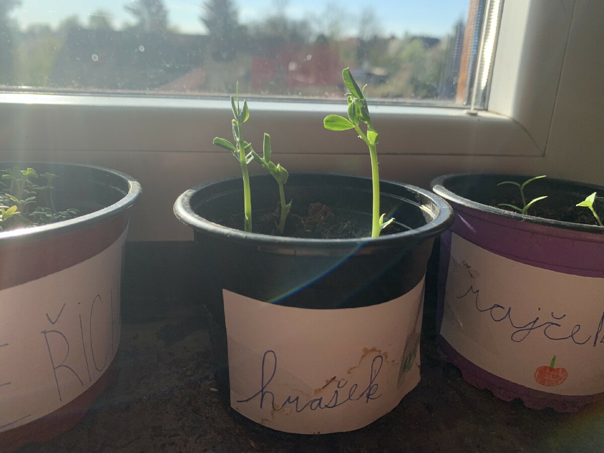 V pracovních činnostech děti zasely semínka různých rostlin a sledovaly a zaznamenávaly jejich růst. Vyzkoušeli jsme si pokus s hráškem v plastovém pytlíku, abychom mohli sledovat i růst kořínků.