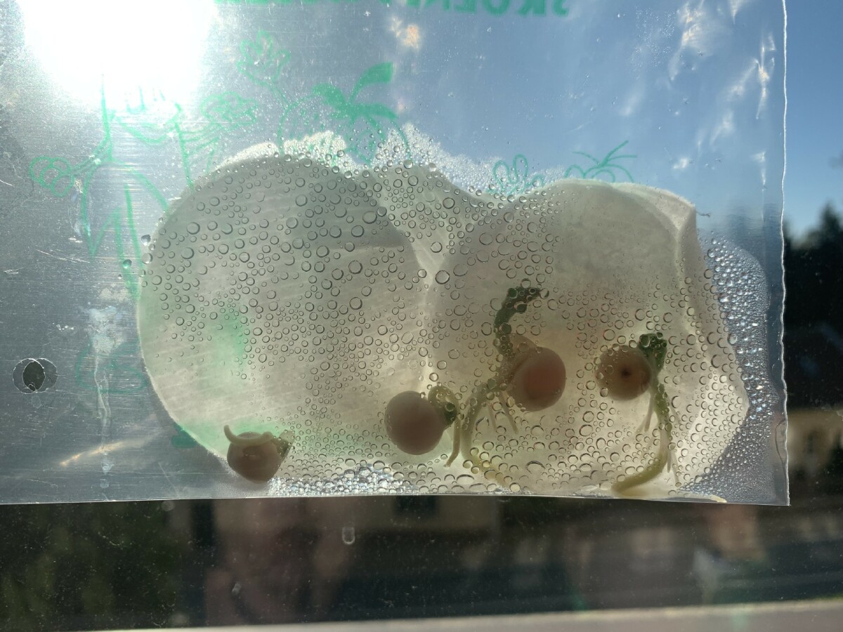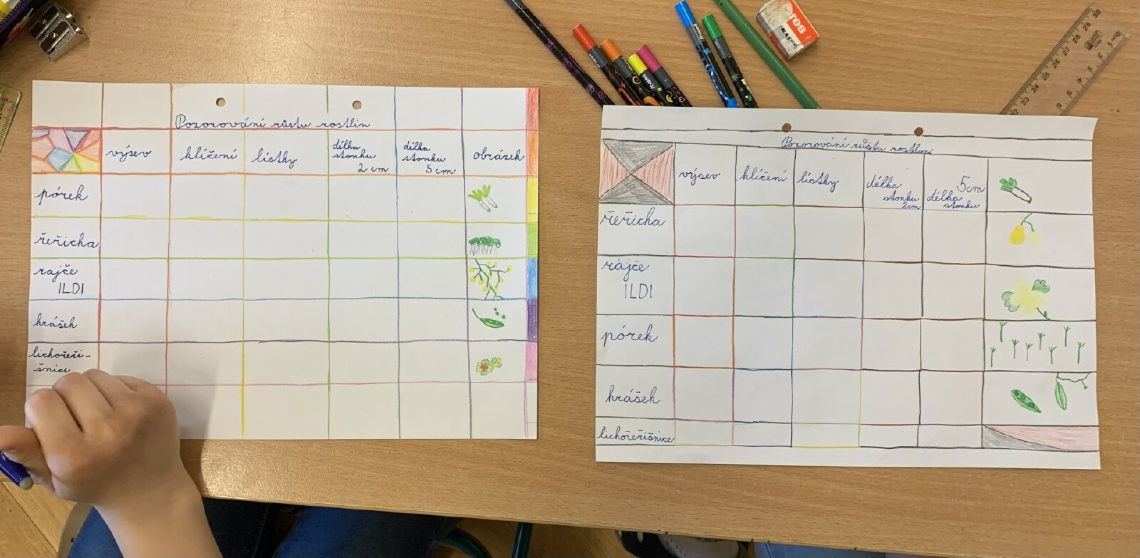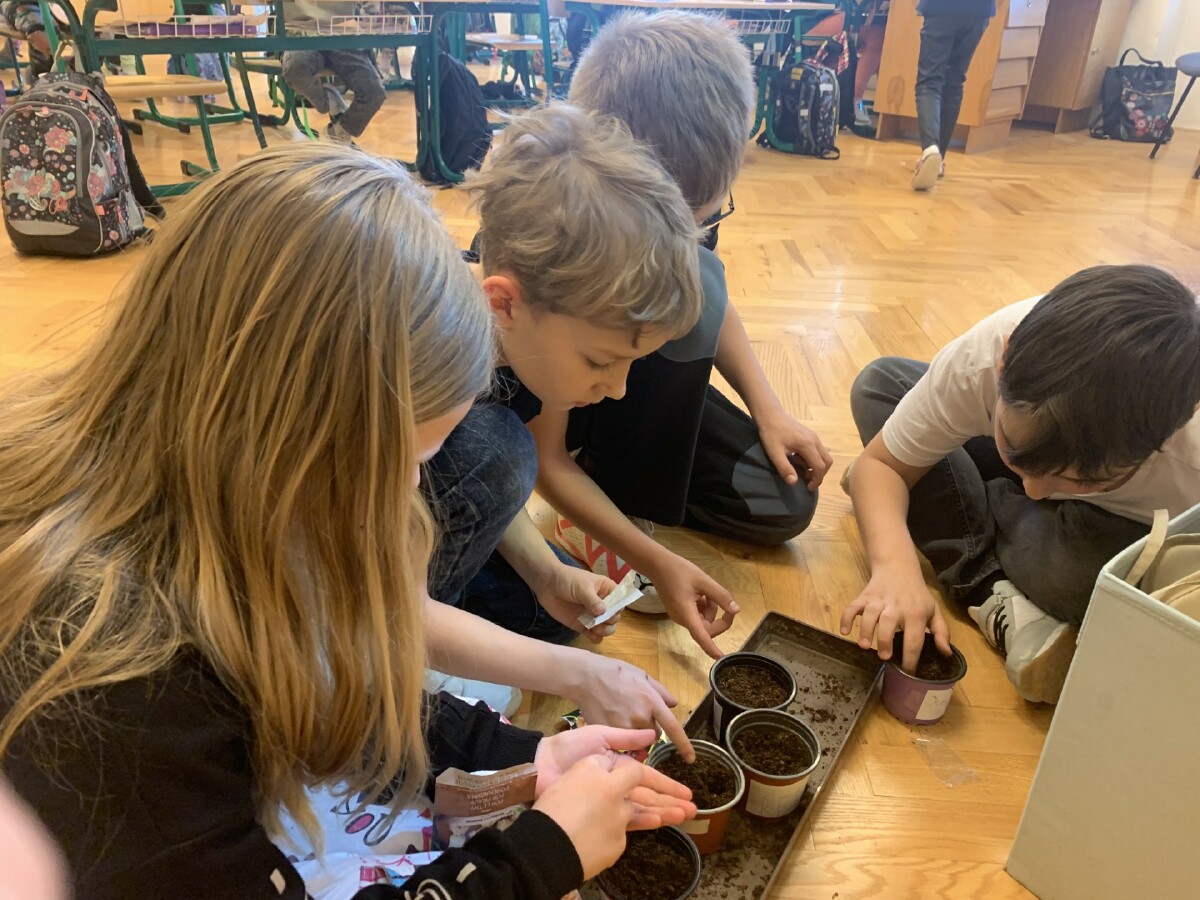 V pracovních činnostech děti zasely semínka různých rostlin a sledovaly a zaznamenávaly jejich růst. Vyzkoušeli jsme si pokus s hráškem v plastovém pytlíku, abychom mohli sledovat i růst kořínků.
