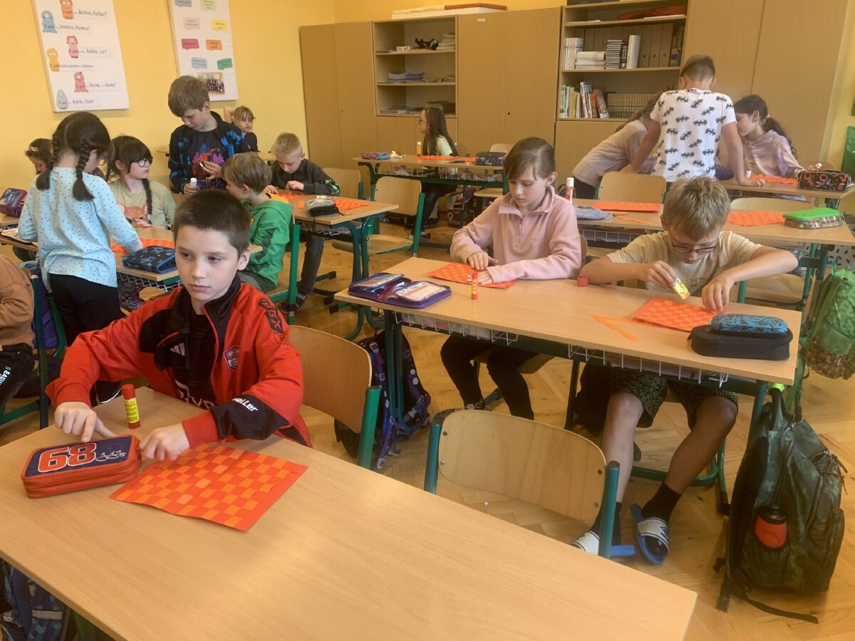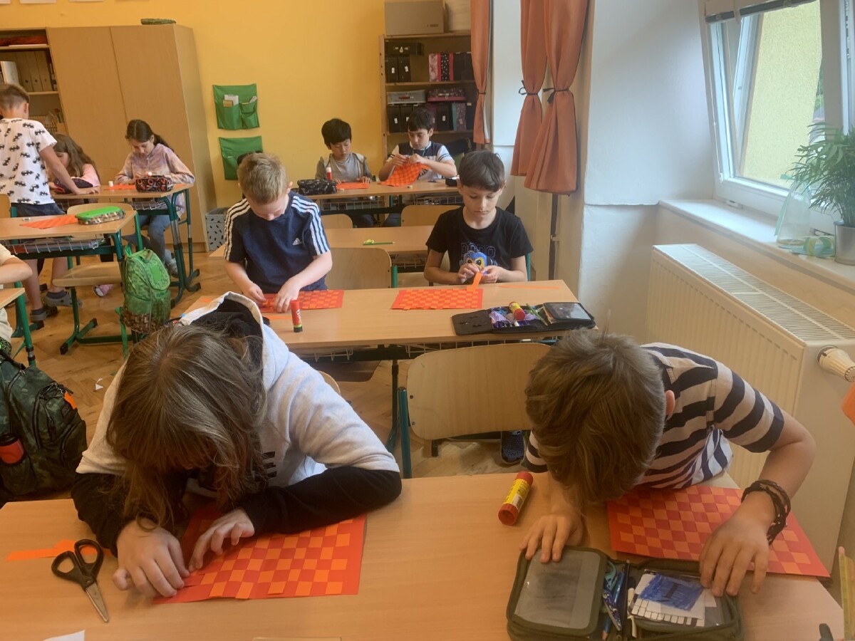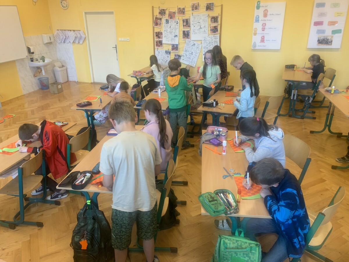 Během práce s papírem jsme procvičili i měření a rýsování.