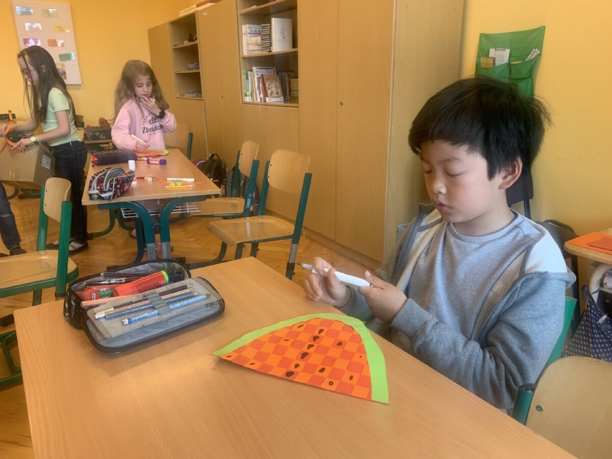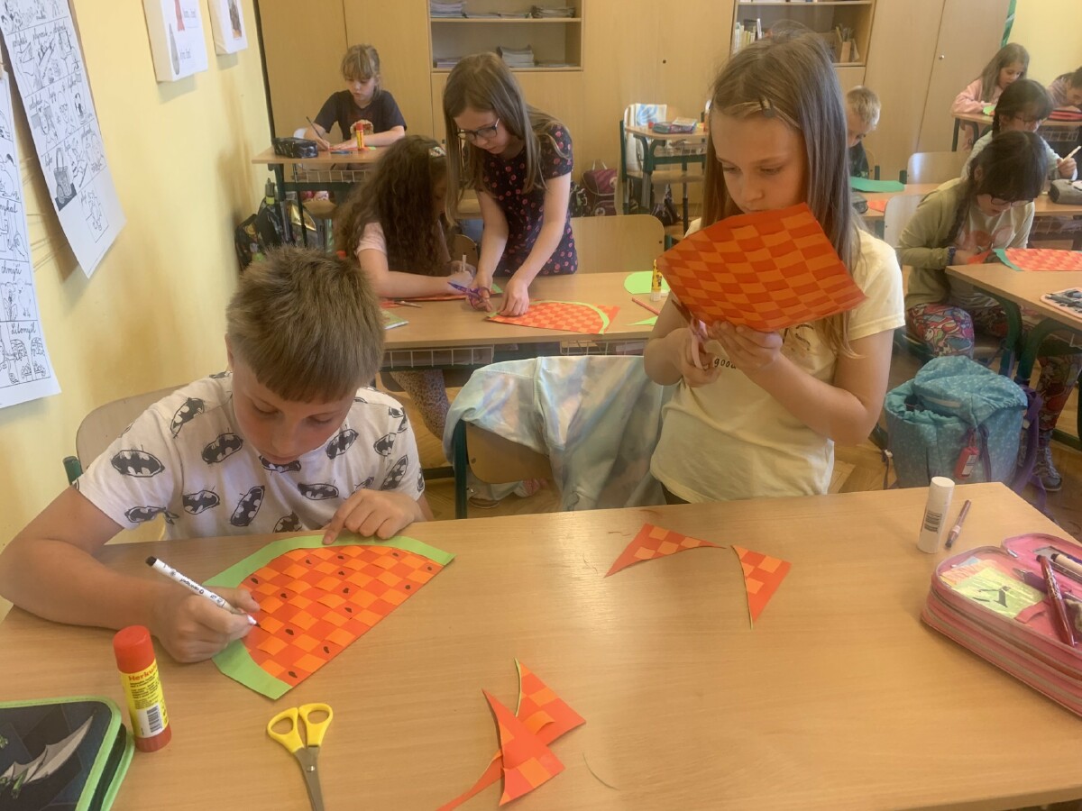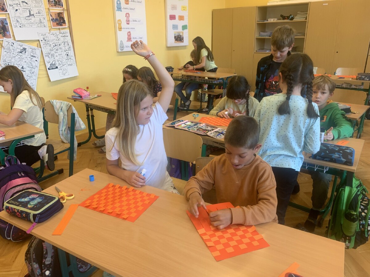 Během práce s papírem jsme procvičili i měření a rýsování.