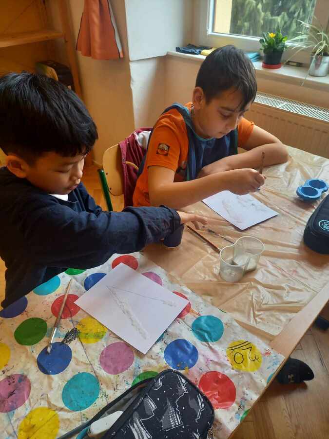 V uplynulých týdnech se třeťáci zabývali látkami a jejich vlastnostmi. Kouzla se solí jsme si vyzkoušeli i při výtvarné výchově.