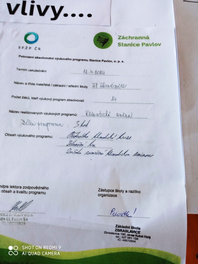V rámci Týdne Země se naše třída zúčastnila v Záchranné stanici Pavlov