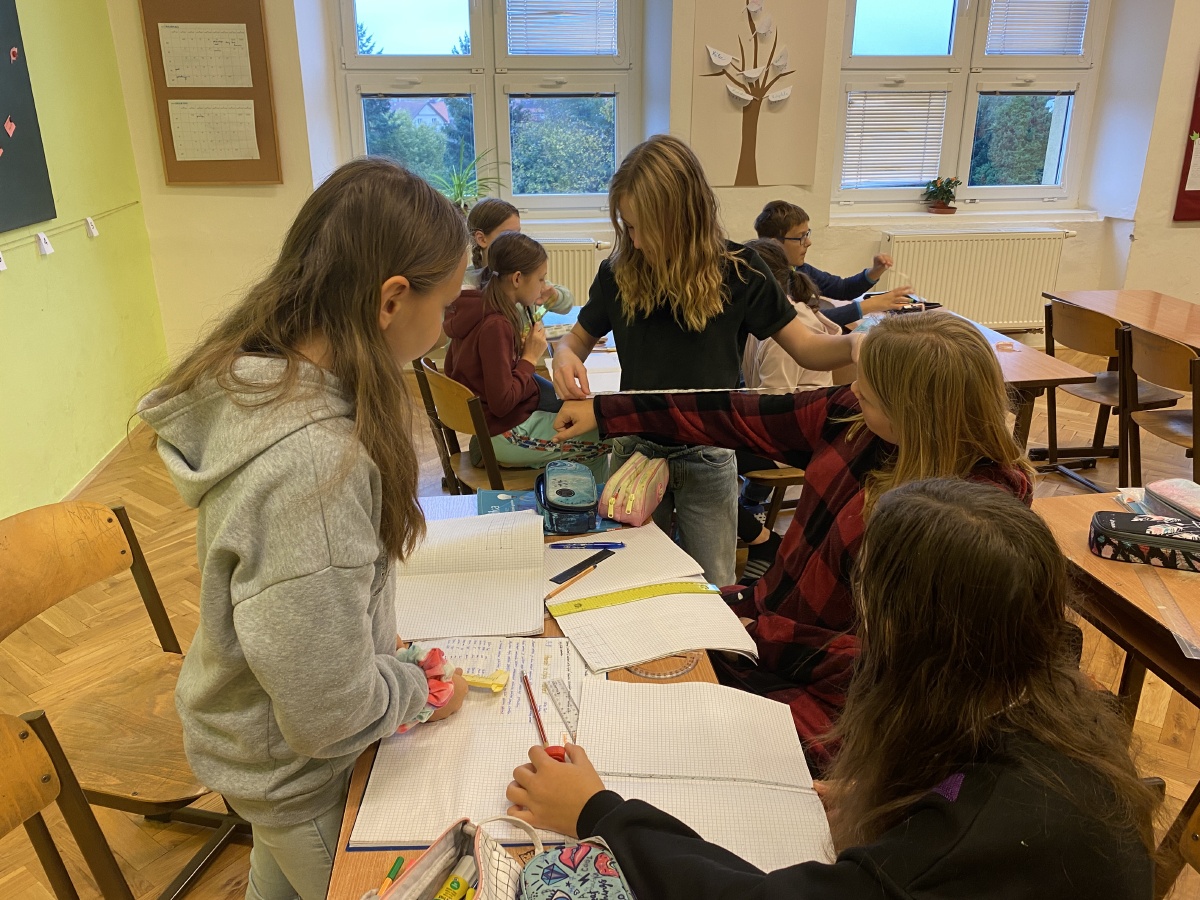 Žáci měřili různými měřidly (skládací metr, svinovací metr, posuvné měřidlo – mikrometr, krejčovský metr). Počítali aritmetický průměr z několika měření.