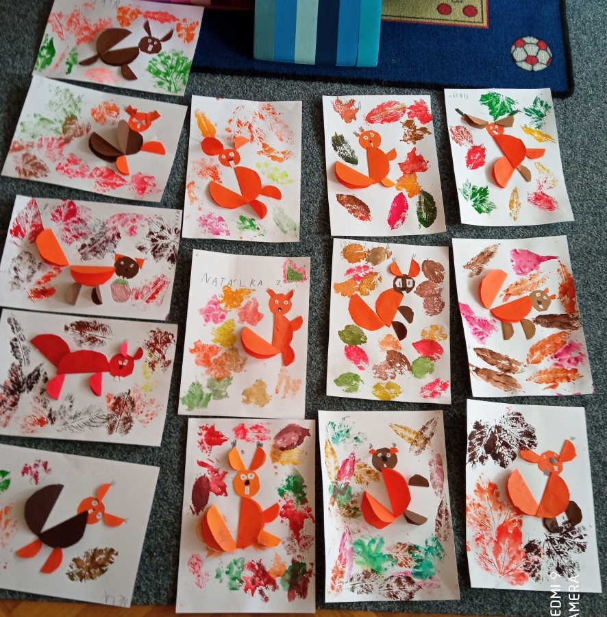 Podzim nám přináší veverky a ježky s barevnými listy.