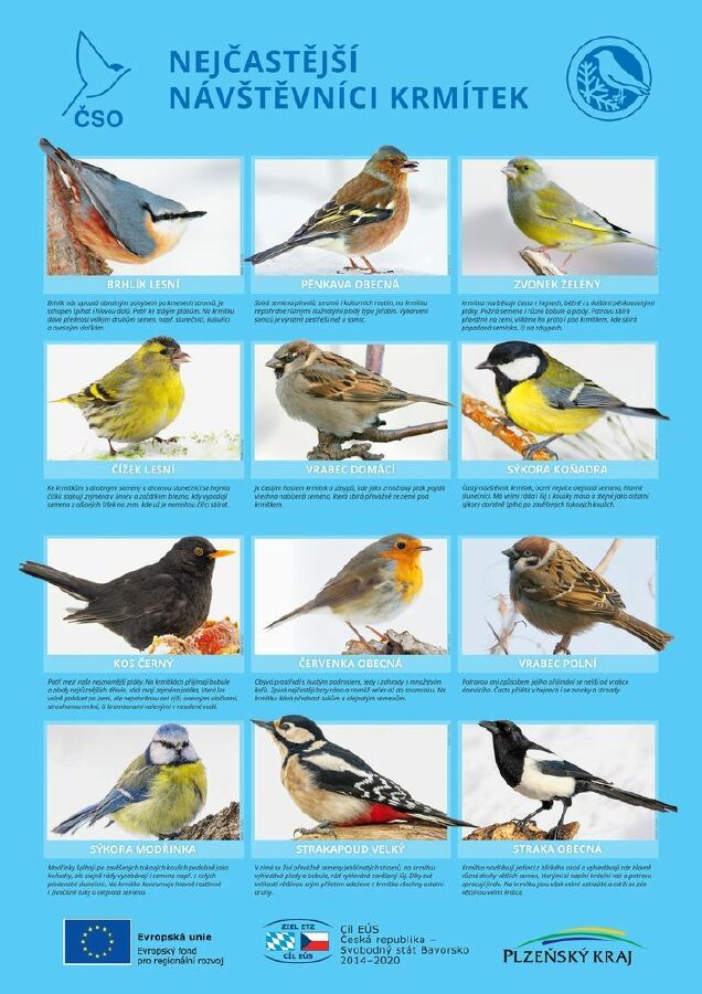- Čím rozmanitější potravu v krmítku nabídneme, tím více druhů pozorujeme.