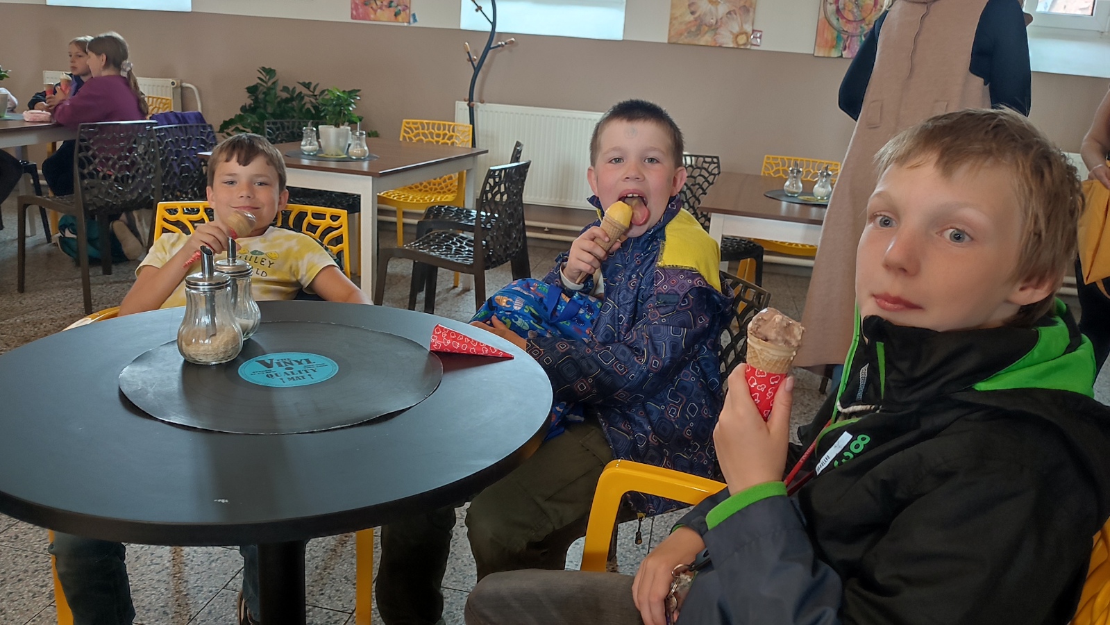 Samozřejmě nesměla chybět ani zámecká cukrárna, kde jsme si důkladně zamlsali. Přísun cukru jsme vyběhali na nedalekém dětském hřišti a než jsme se nadáli, vraceli jsme se zpět do Zbraslavic.