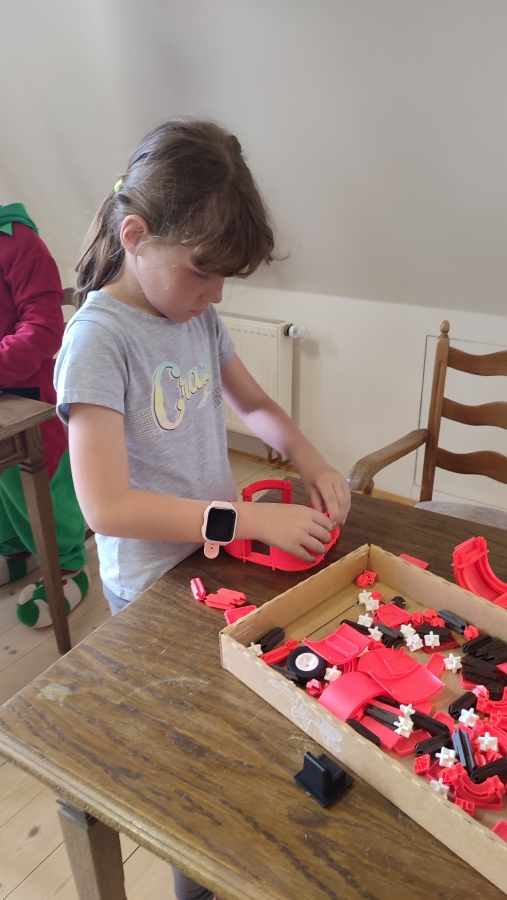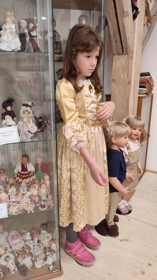 Protože celé dopoledne pršelo, další část výletu jsme strávili na zámecké půdě, kde jsme si prohlédli Svět panenek a kostiček. Tady jsme si stavěli z různých stavebnic, hráli deskové hry, převlékali se do pohádkových kostýmů a vyprávěli si zajímavé příběhy.