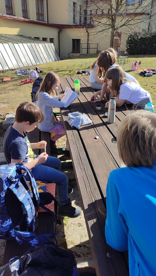 V březnu jsme si opakovali čísla do 1000, pohyb na číselné ose, rozeznávali jsme jednotky, desítky a stovky, opakovali jsme vyjmenovaná slova a také jsme si četli pověst o Zbraslavicích. Asi nejzajímavějším tématem byl projektový den na téma vlastností látek. Ve venkovní učebně jsme zkoumali délku, hmotnost a objem. Měřili jsme, vážili, odhadovali a porovnávali. Výstupem byly myšlenkové mapy, se kterými budeme dál pracovat jak v matematice, tak v prvouce i českém jazyce.