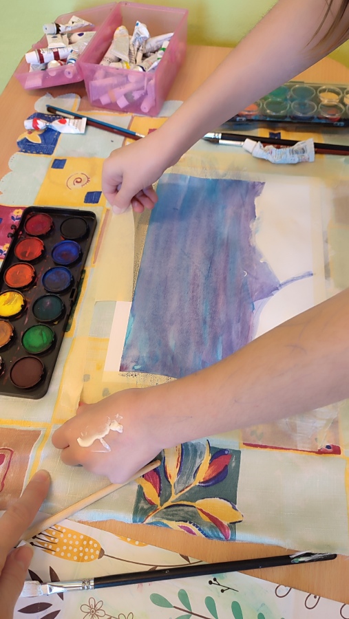 Venku moc sněhu nemáme, tak jsme si zimní krajinu alespoň představili a zkusili ji namalovat.
