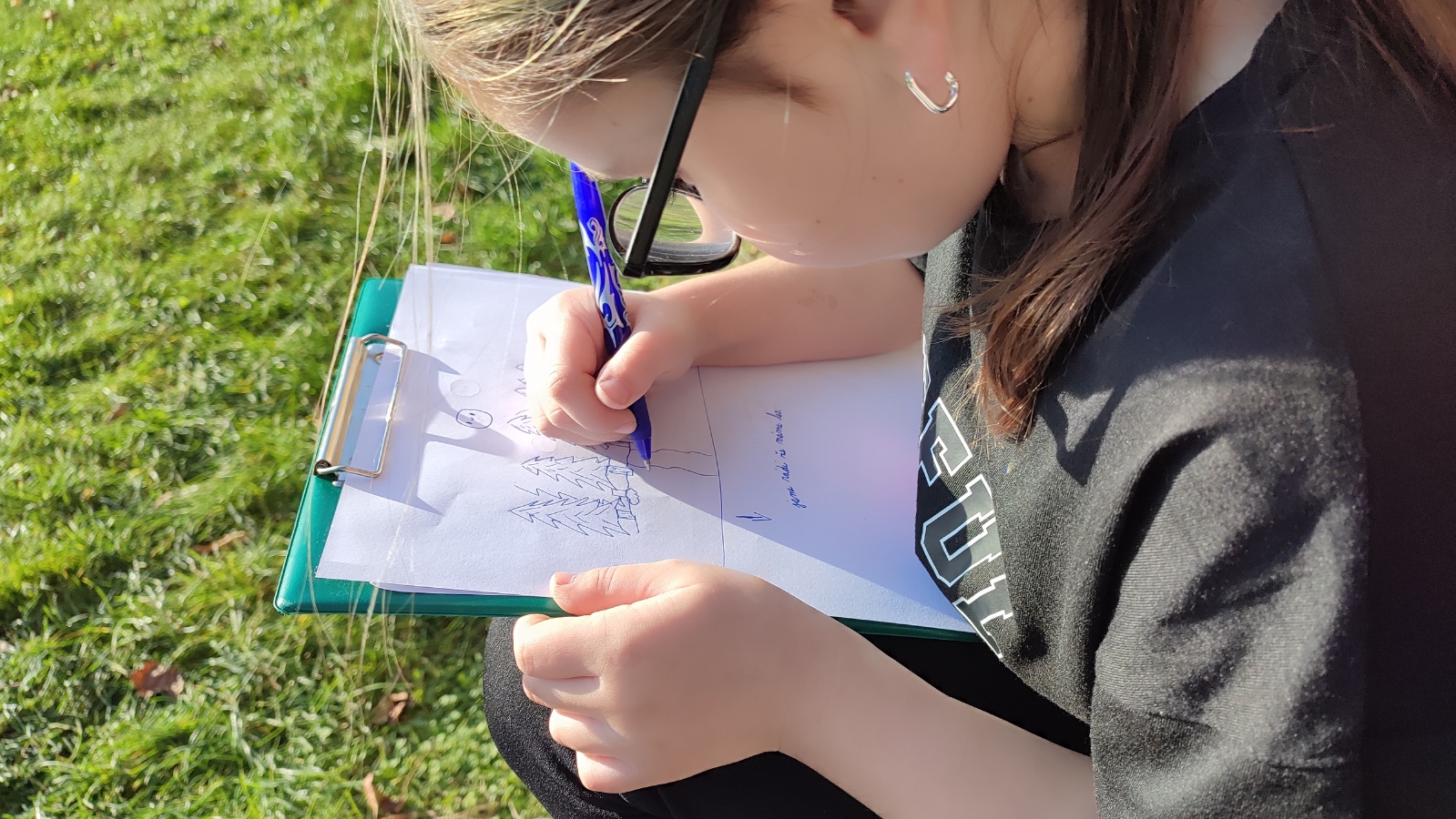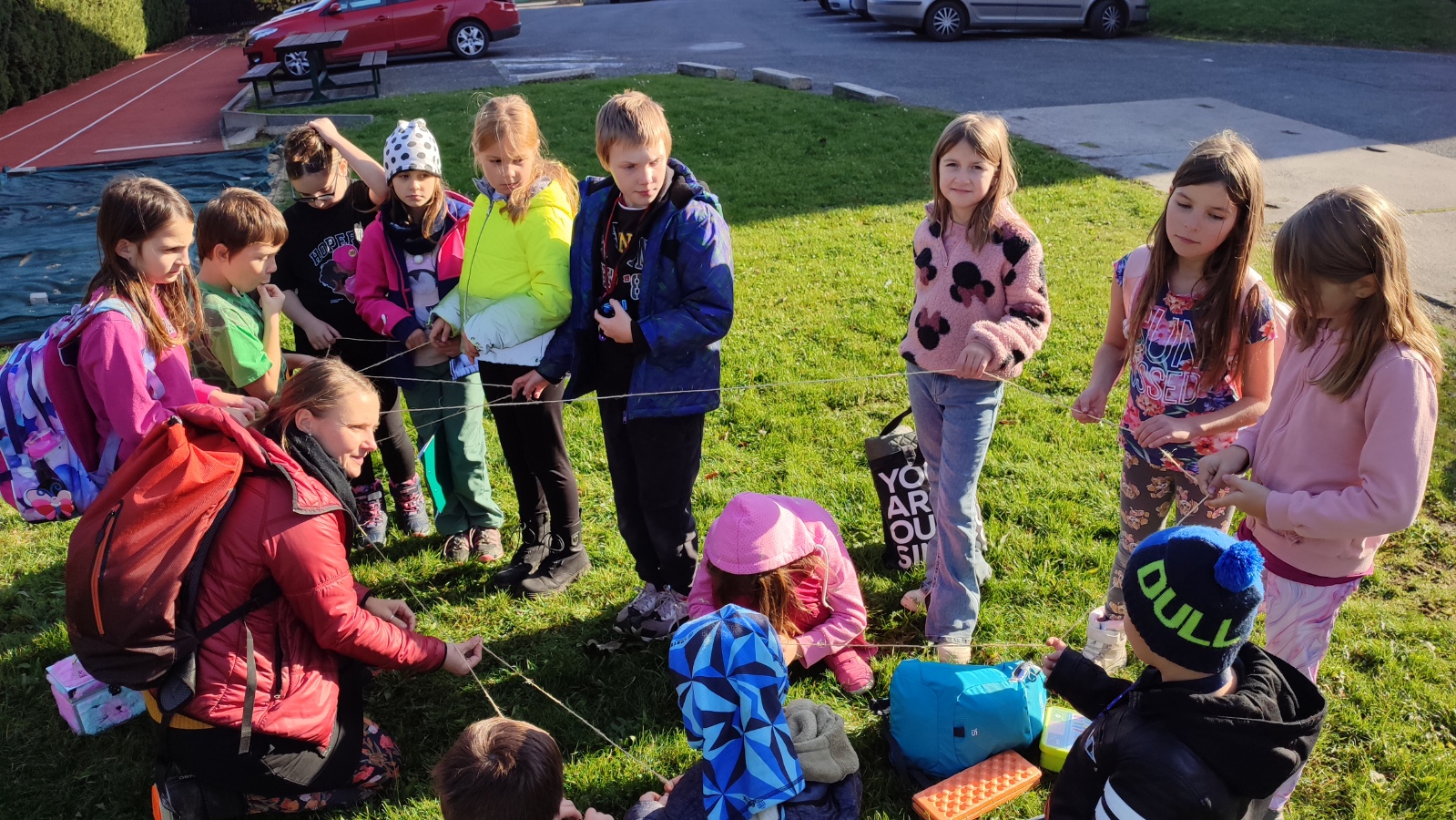 První hodinu jsme zahájili seznamováním a připomínáním společných pravidel. Na celé dopoledne se k nám připojila paní Šárka Mrňáková, která nás bude na našich výpravách provázet. Šárka má velké zkušenosti s učením venku a hned do naší posádky skvěle zapadla.