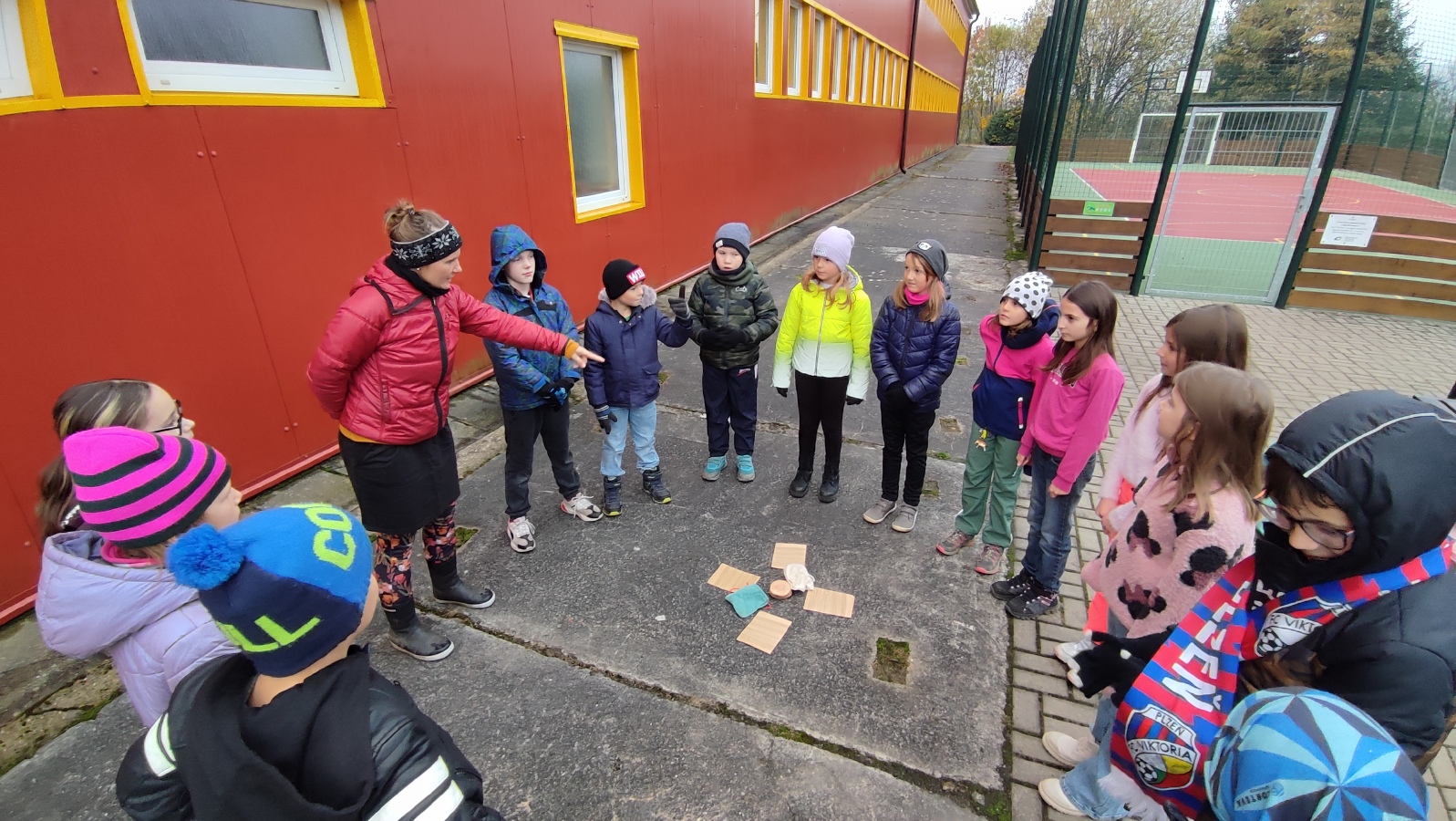 V úterý 5. 11. jsme vyrazili na naši první velkou výpravu. Učit se dvě hodiny venku už jsme vyzkoušeli, ale celé dopoledne pro nás byla výzva. A protože počasí nám vyšlo na jedničku a sluníčko ještě z posledních chvil hřálo, všichni si to moc užili a nikomu se nechtělo zpět do školy.