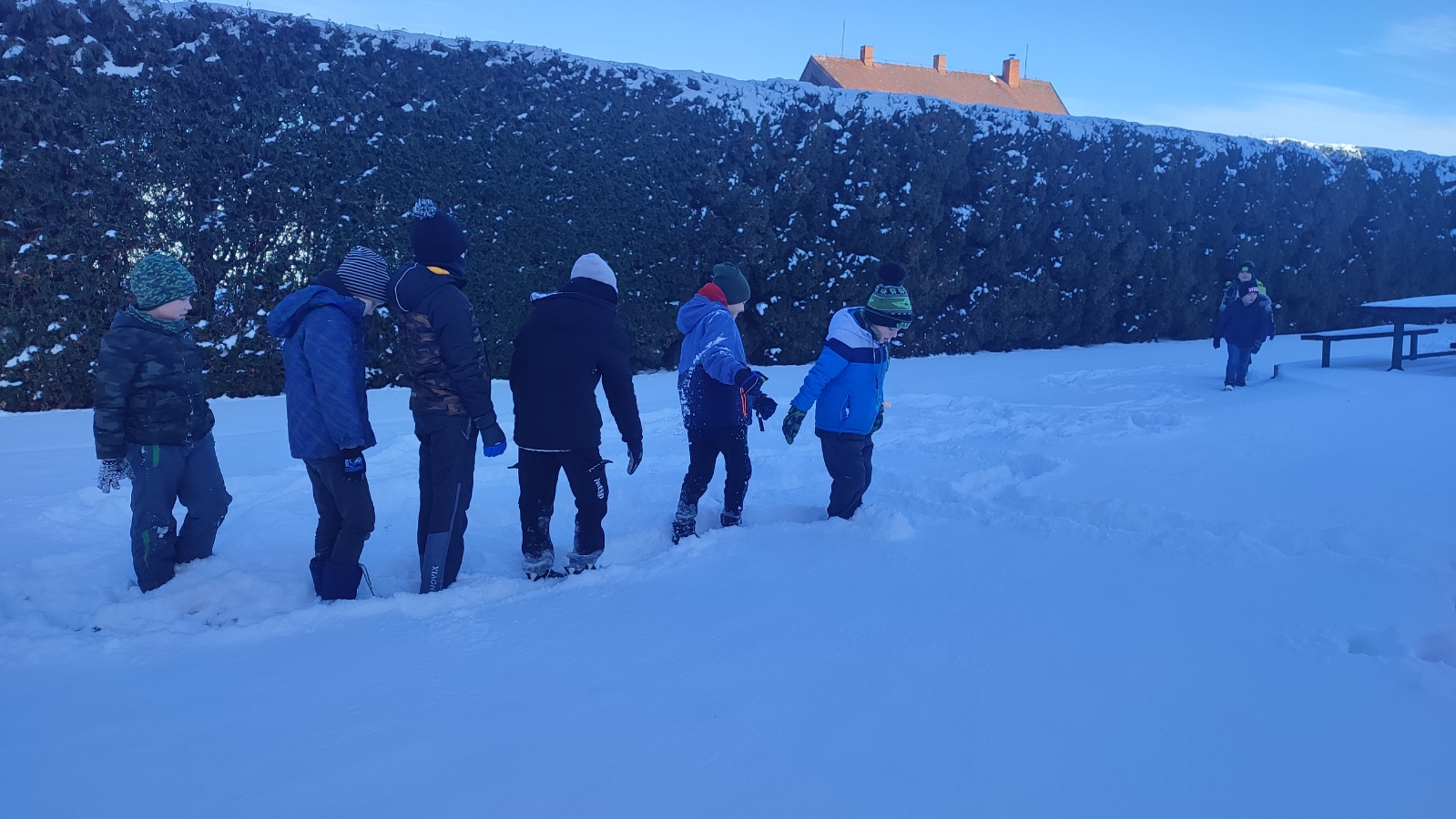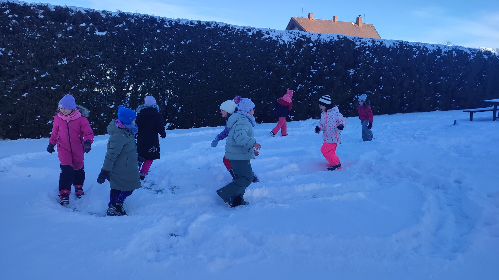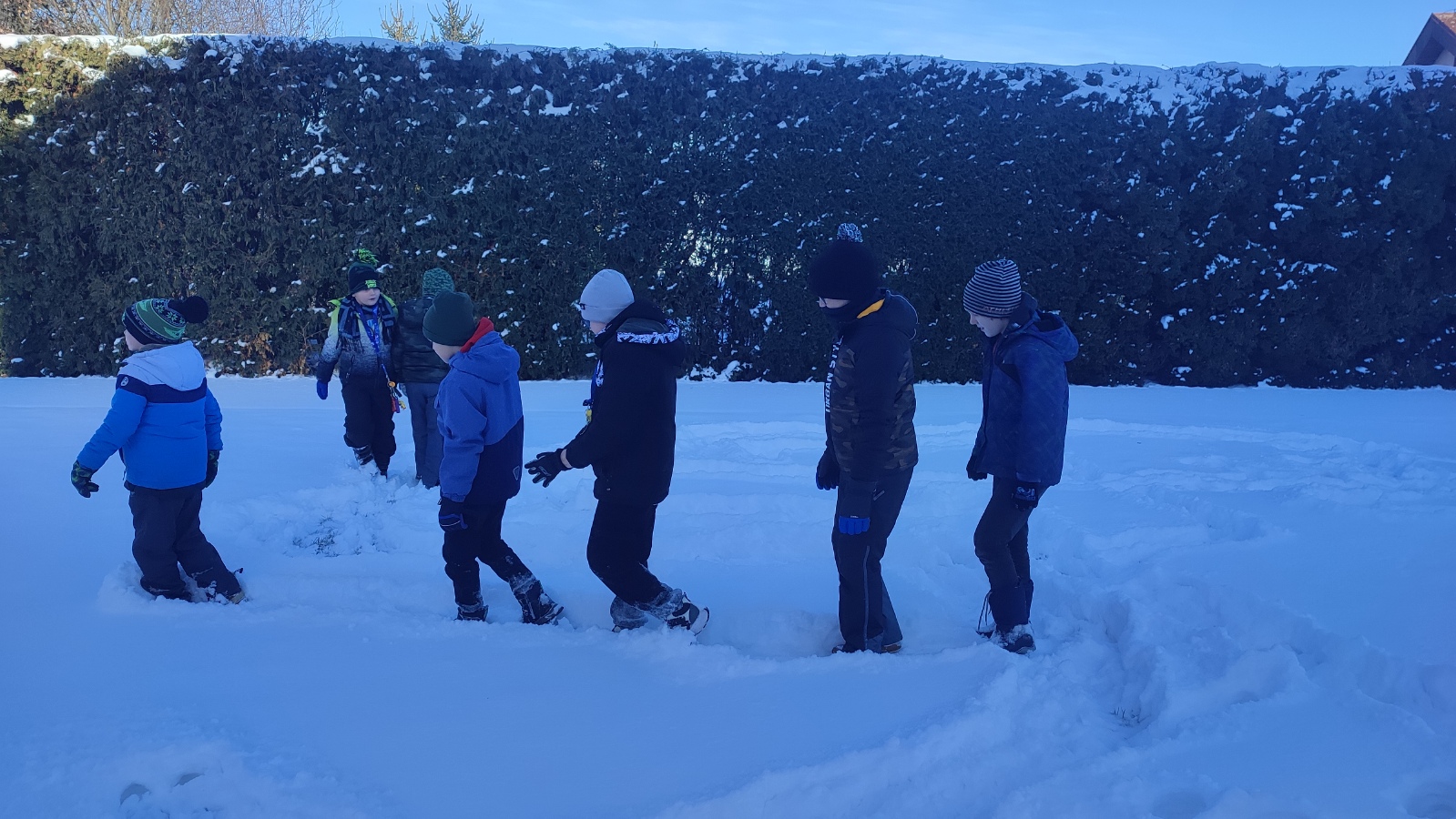 Učení venku má mnoho pozitivních aspektů. Zvedá spokojenost a náladu dětí, zvyšuje jejich imunitu a odolnost nebo posiluje vztahy mezi dětmi i s učiteli. A protože nemůže pořád jen svítit sluníčko a být teplo, vyrazili jsme ven jak v prosinci, kdy začala být zima, tak v lednu, kdy nám krásně nasněžilo.