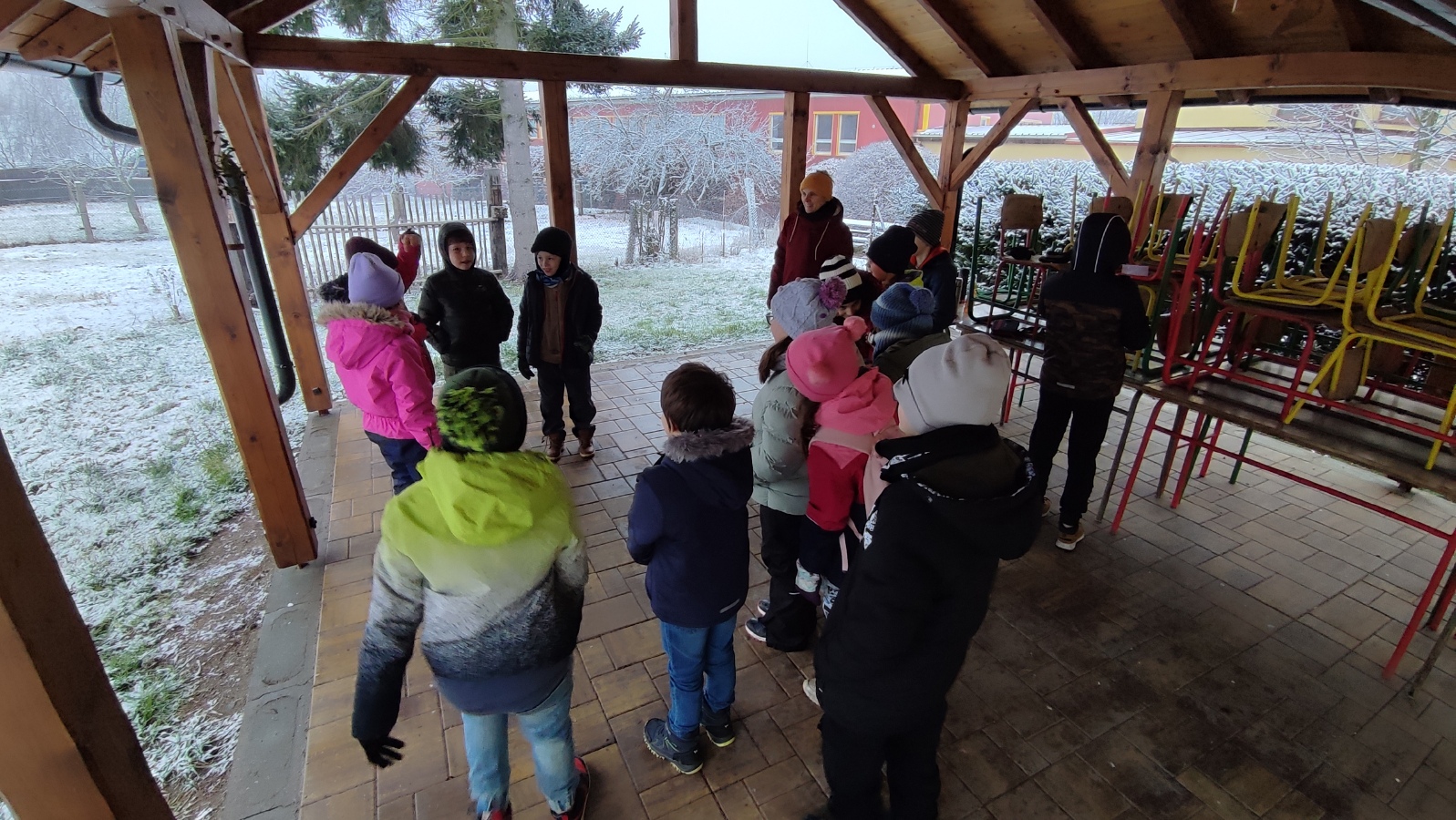 Že nám nemusí být vždy úplně teplo, jsme si vyzkoušeli v prosinci. V plánu byly tři vyučovací hodiny strávené na školní zahradě s tématem adventu. Po předchozích zkušenostech jsme věděli, že pobyt venku žáky baví a nevadí jim nepohodlí. A protože ne vždy vše platí, tentokrát jsme venku moc dlouho nevydrželi.