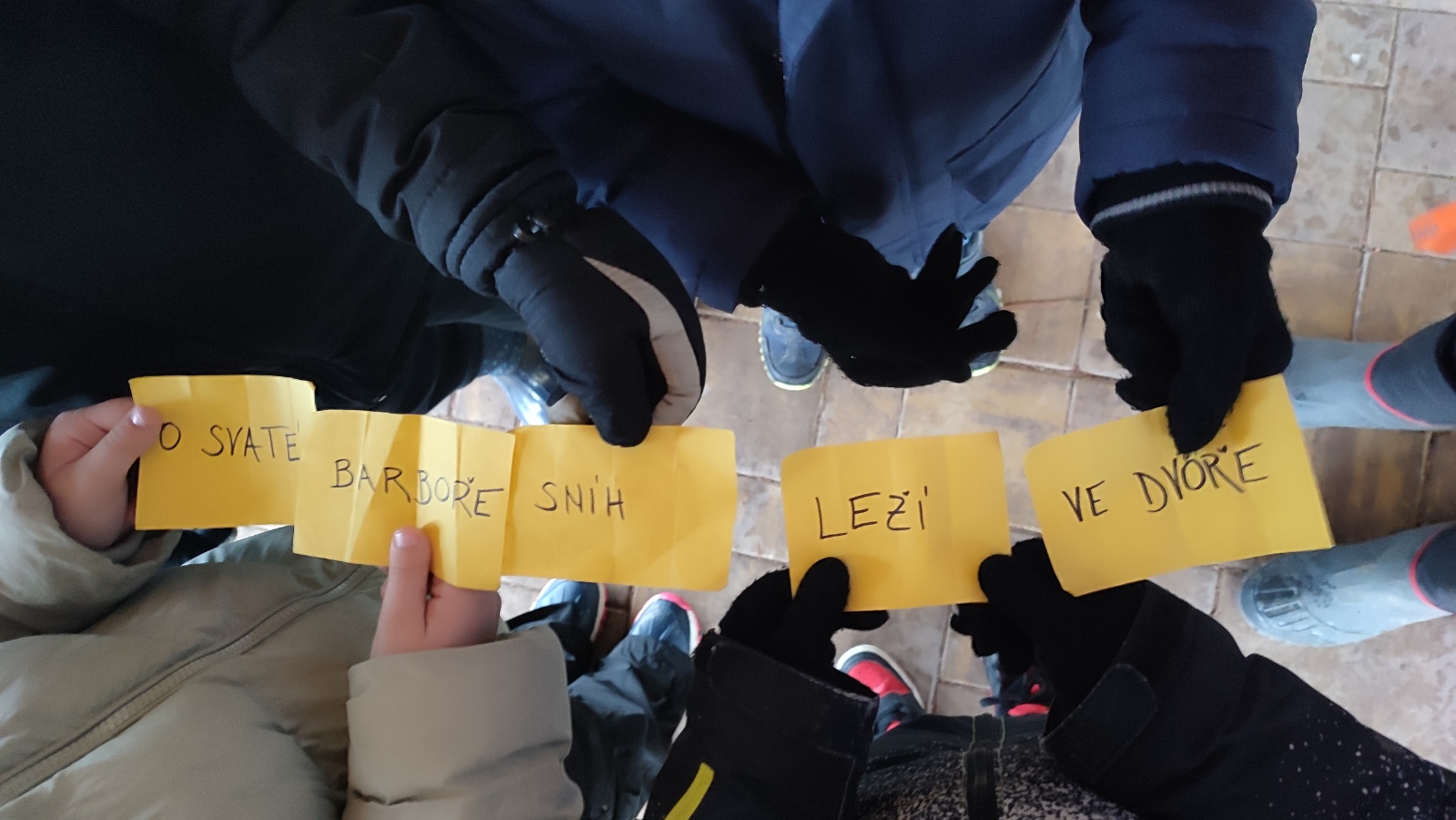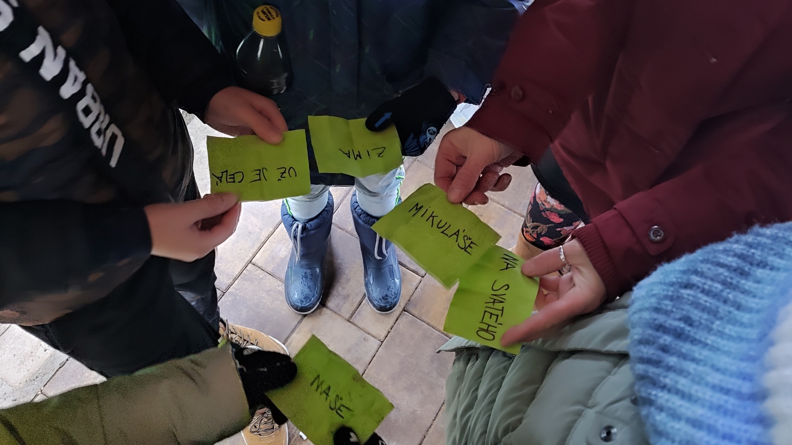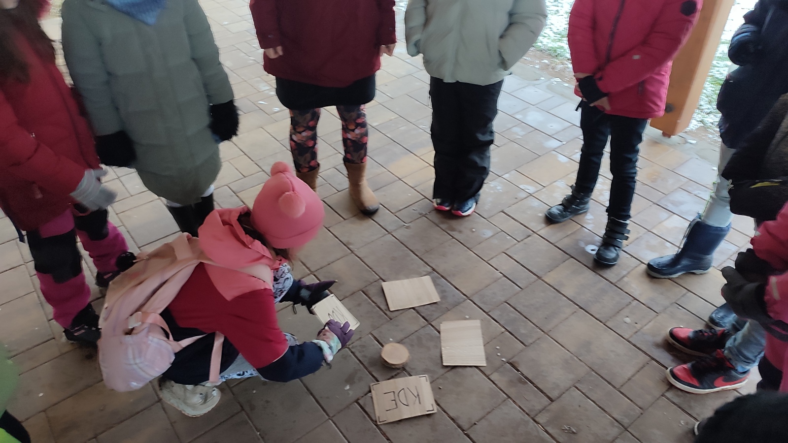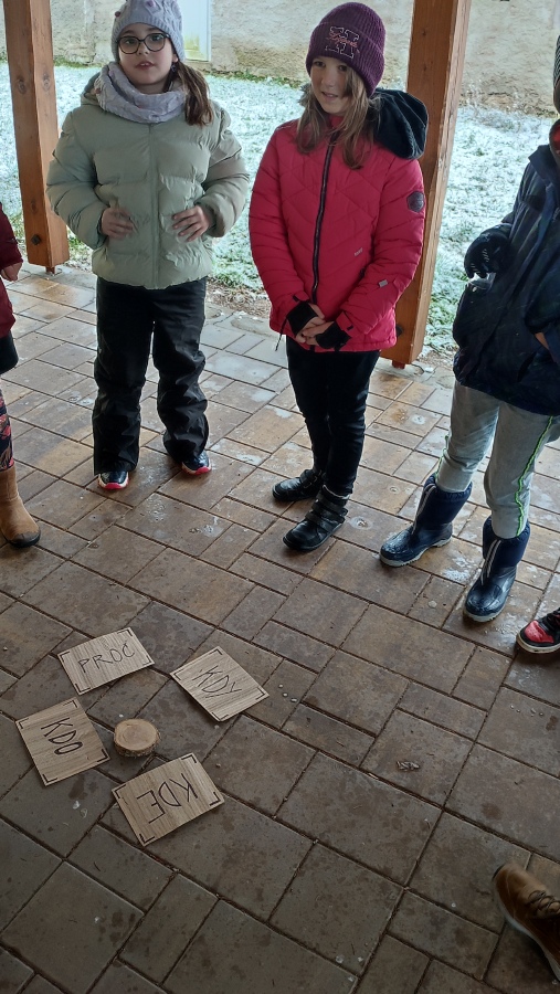 Několik žáčků nemělo vyhovující oblečení nebo obutí a brzy jim začala být zima. Venku jsme tak stihli jen úvodní aktivity, poskládání zimních rčení, názvy a význam adventních svíček. Pak už nepomohly ani pohybové aktivity a proto jsme se přesunuli do tělocvičny, kde jsme s výukou pokračovali.
