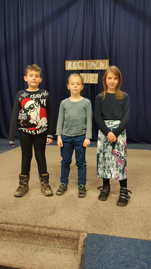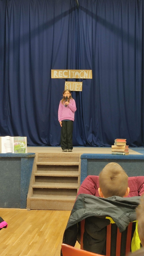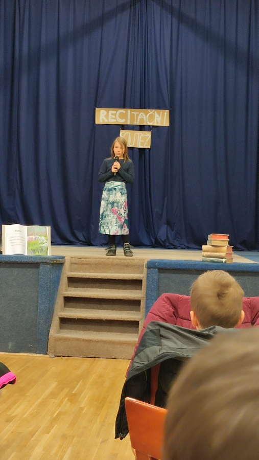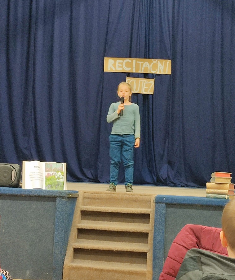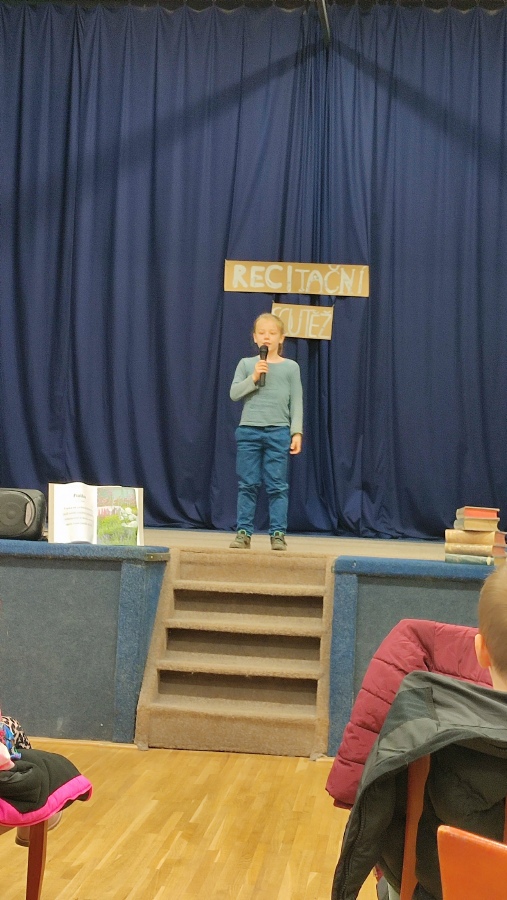 Chtěla bych všem žákům poděkovat za jejich úsilí při nacvičování básniček i odvahu vystoupit před celou třídou nebo ve školním škole dokonce před celou školou.Překonávání překážek a zdolávání výzev nás přece posouvá dál. Pro někoho to byla úplně nová zkušenost a velká výzva. Všichni byli nervózní, tréma občas vymazala nějaký ten veršík, ale přesto to nikdo nevzdal a výkony recitátorů sklidily zasloužený potlesk.